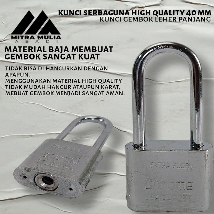 1 Lusin Kunci Gembok Stainless Panjang 40 mm / Iron Pad Lock / Leher Panjang
