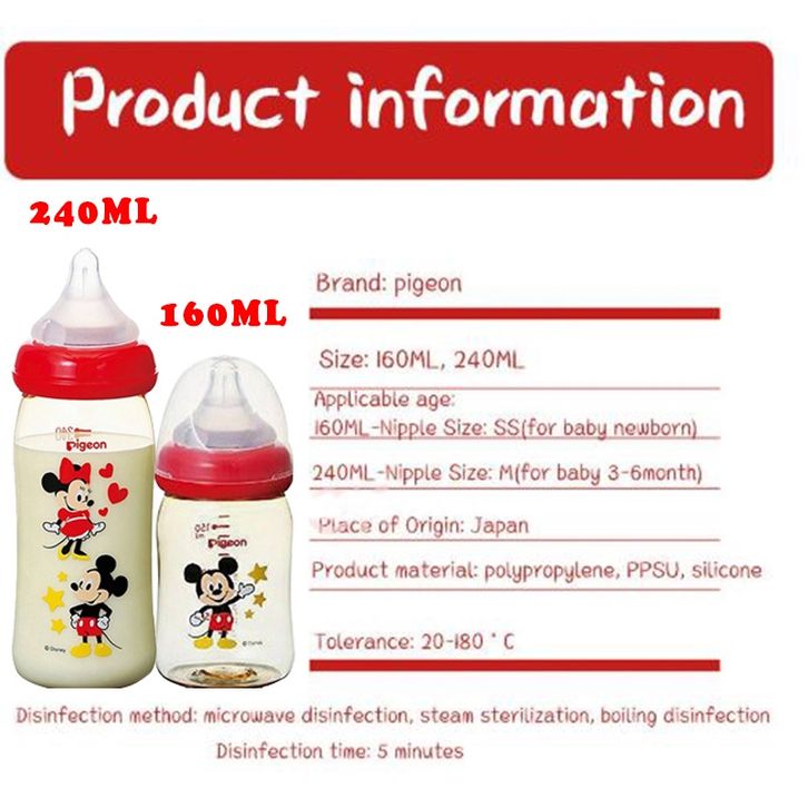 FREE ONGKIR- Pigeon Disney 330ml Botol Susu PPSU Wide Neck Mickey Gajah Jerapah Elephant Giraffe