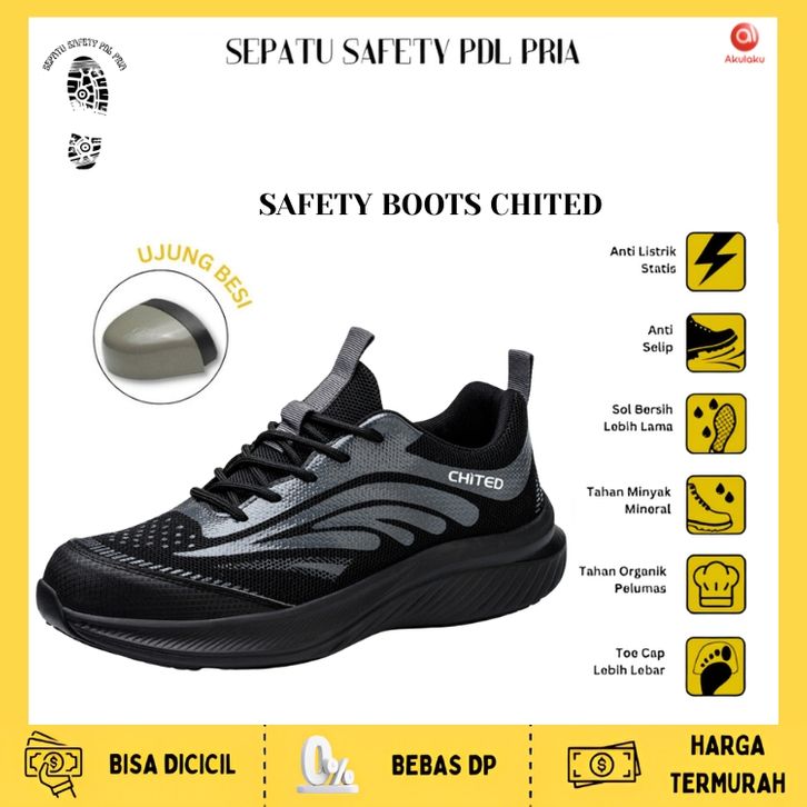 Sepatu Safety Sport Safety Shoes Ujung Besi Anti Slip Hitam 9229 Sepatu Safety Septy Septi Pria