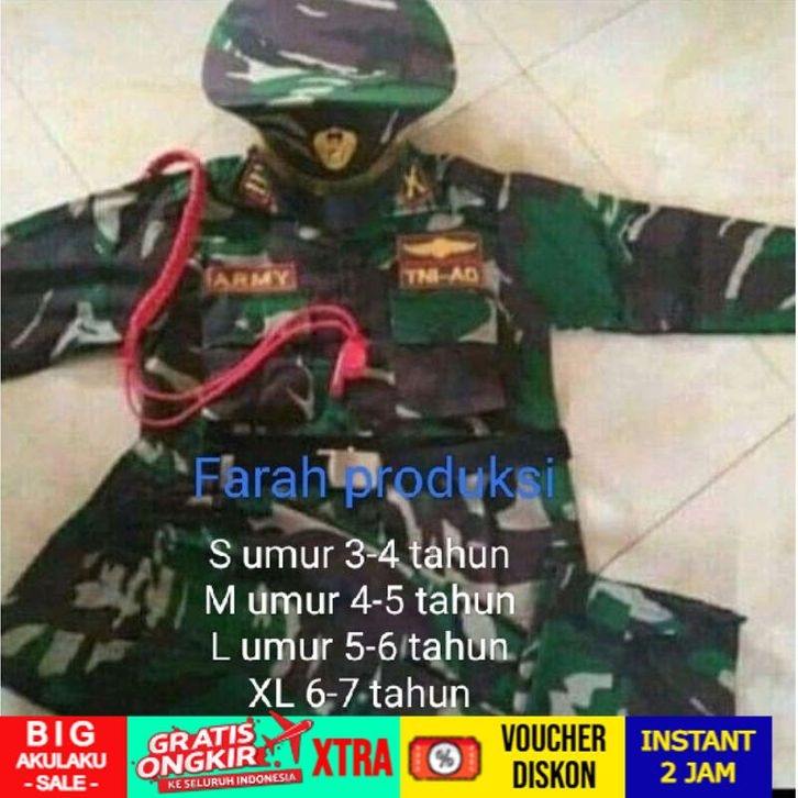 BAJU SERAGAM TENTARA ANAK LAKI DAN PEREMPUAN | SETELAN KOMPLIT | BAJU SERAGAM TNI ANAK | KOSTUM KARNAVAL | SERAGAM