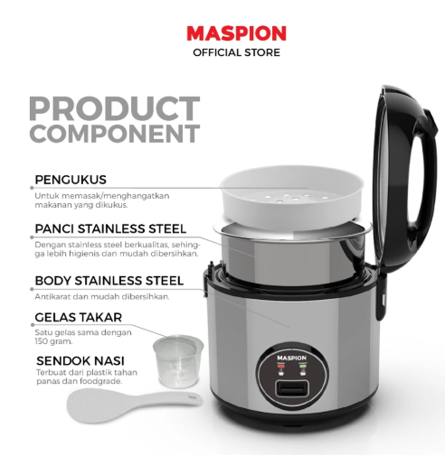 MAGIC COM MASPION RICE COOKER 1.8 1.2 1 LITER ALAT MASAK NASI PENGHANGAT MURAH BERGARANSI RESMI MRC MRJ-1003 TSS