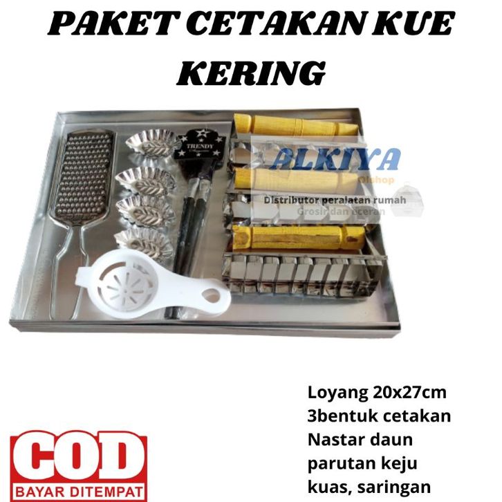 PAKET CETAKAN KUE KERING/3 pcs Loyang kuker 20pcs Nastar daun/ 3 kastenggel/parutan keju/kuas/dan pemisah kuning telur