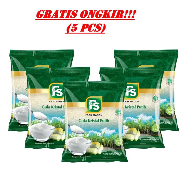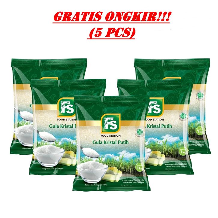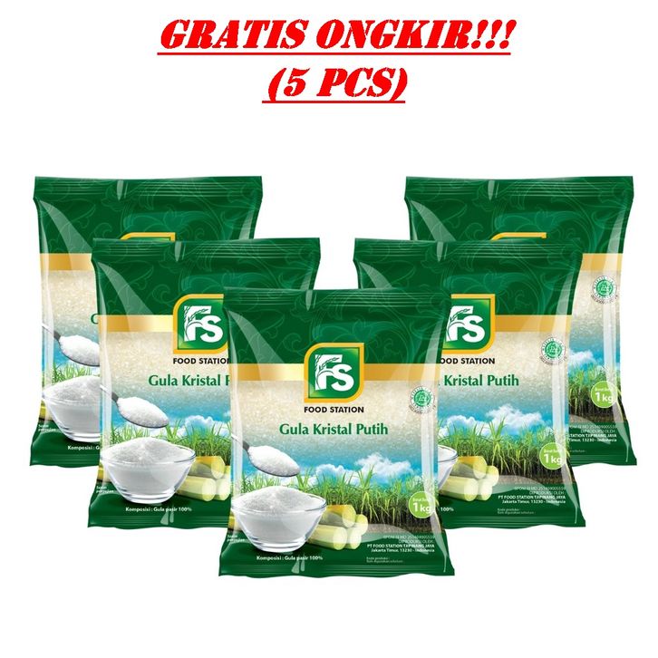 GRATIS ONGKIR-Food Station -FS Gula Kristal Putih Hijau 1 Kg (5 Pcs)