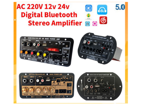 SH - DC 12V 24V AC 220V Amplifier Ampli Mini Board Audio Bluetooth USB FM Radio TF Player Subwoofer