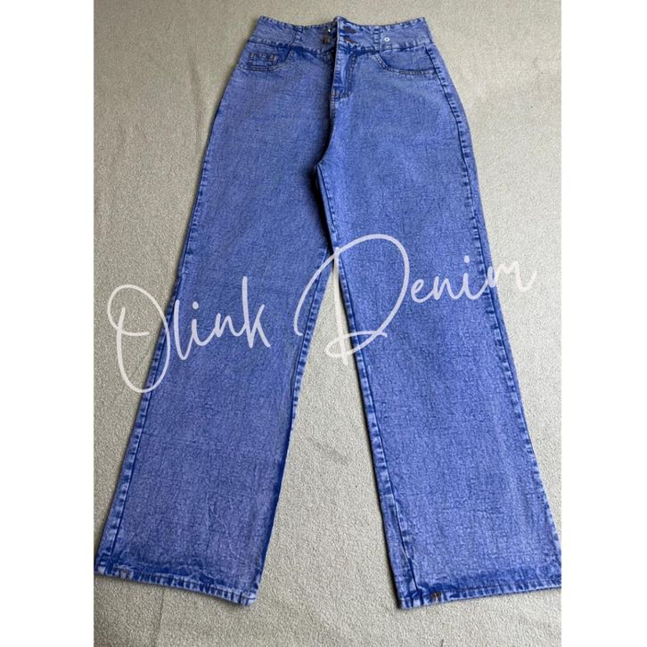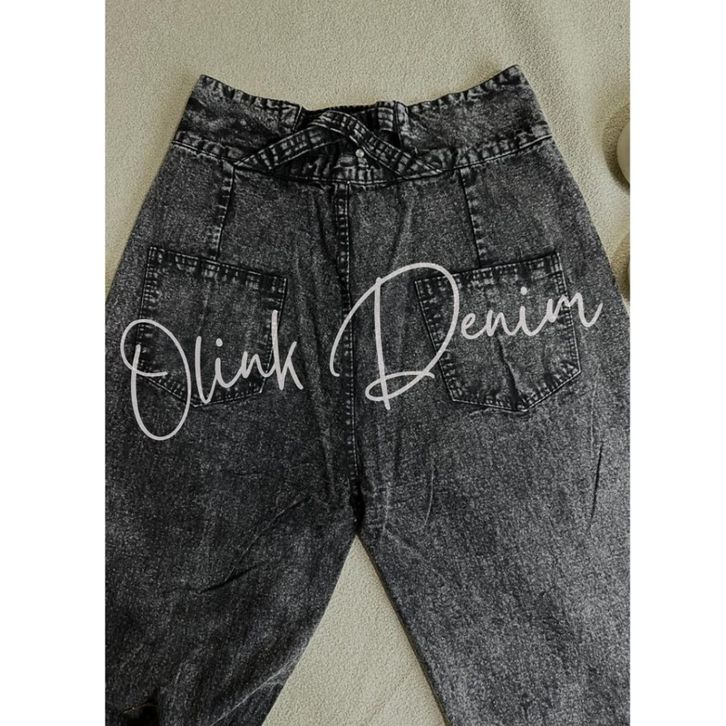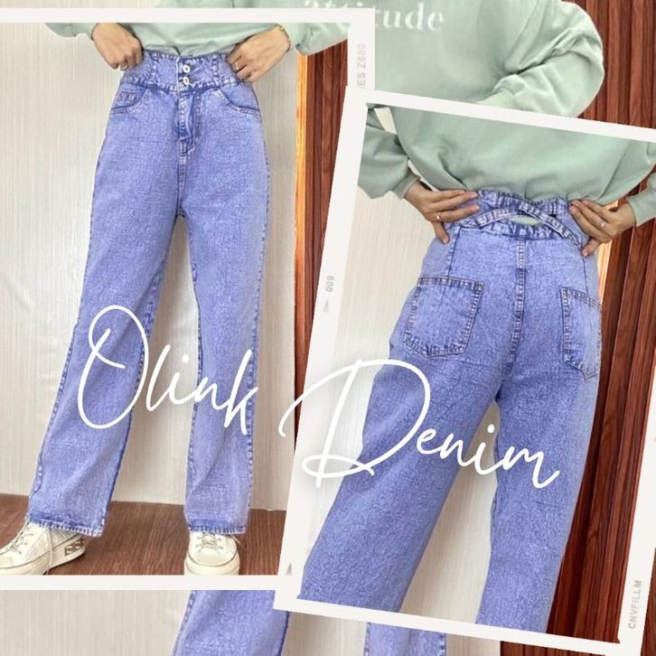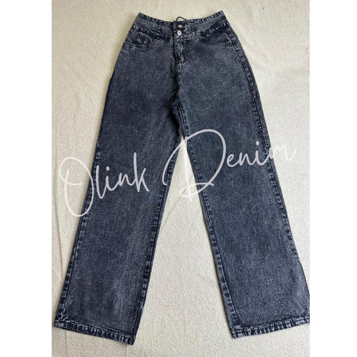 Celana Jeans Loose Kulot Cewek Panjang Highwaist Silang Belakang Variasi 2 Kancing Depan Celana Polos OOTD Kekinian