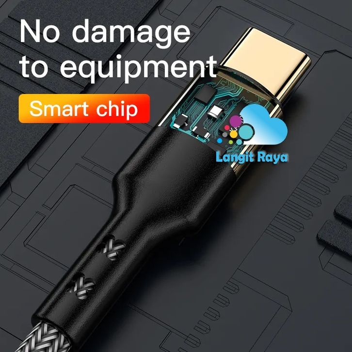 Kabel Data Type C To Type C PD 60W 3A Gold Plated Fast Charging 1.2M Braided Kabel Charger Tipe C2B
