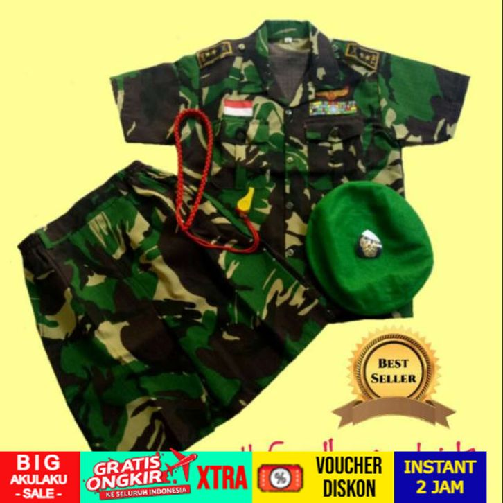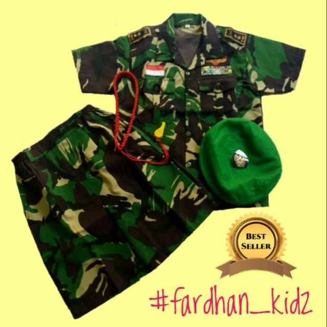 kostum profesi Tentara/Doreng putri pakai baret hijau anak Tk-SD BAHAN PREMIUM
