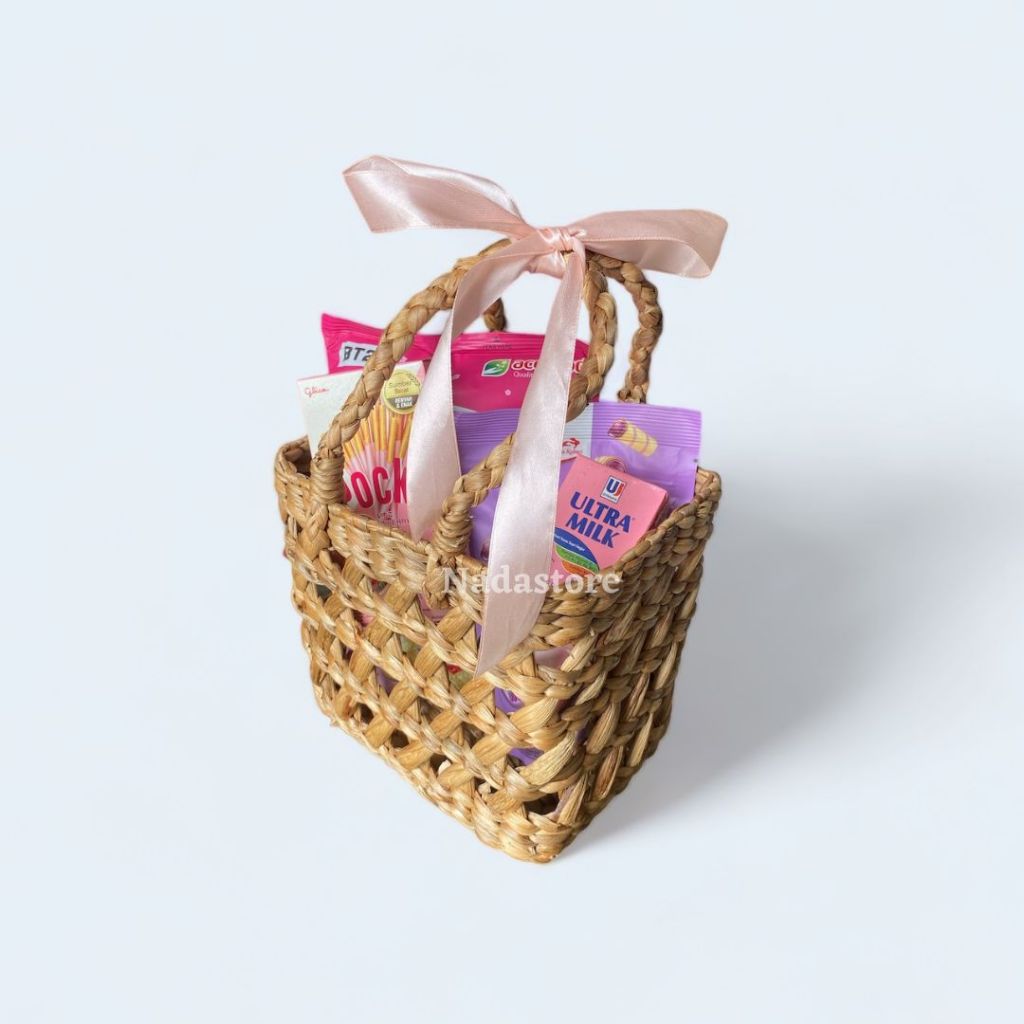 KERANJANG HAMPERS ANYAMAN ENCENG GONDOK / TRAY HANDLE HAMPERS TAS KERAWANG ENCENG GONDOK / TAS PARCEL