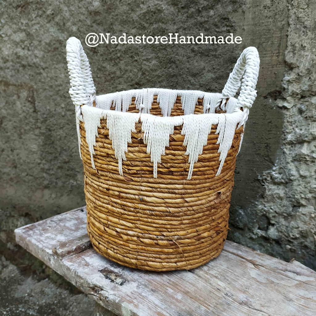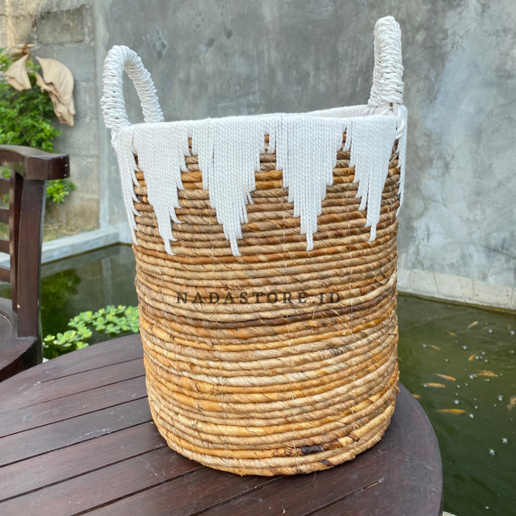 KERANJANG ANYAMAN BANANA RAJUT MOTIF PRISMA KERANJANG LAUNDRY BAG ROTAN