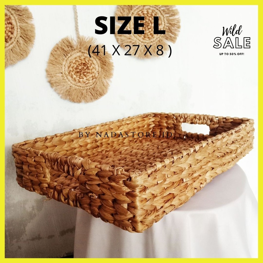 PREMIUM TRAY / NAMPAN / BAKI / KOTAK PENYIMPANAN ANYAMAN ENCENG GONDOK DENGAN RANGKA BESI