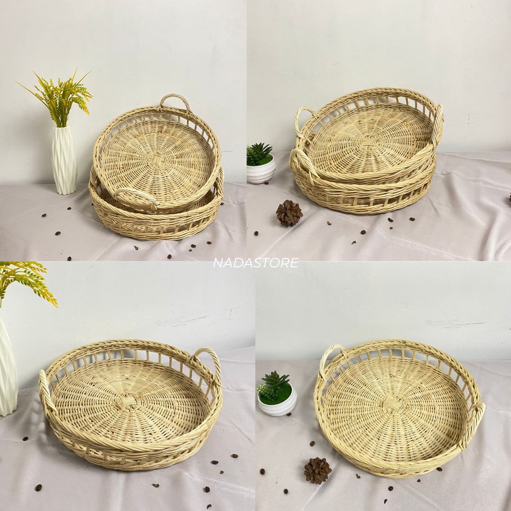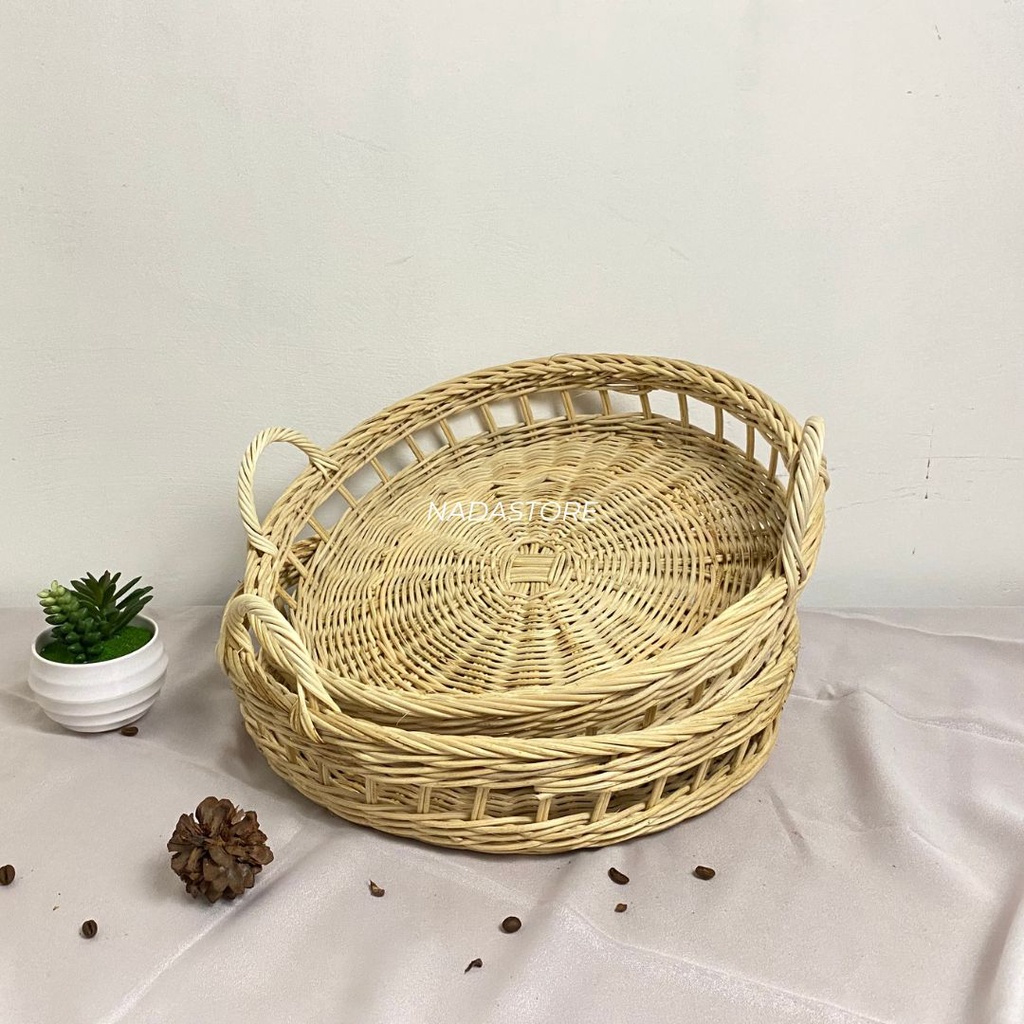 NAMPAN BULAT ROTAN / TRAY BULAT ROTAN RUSTIC / TRAY SESERAHAN PERNIKAHAN ROTAN DIAMETER 36CM