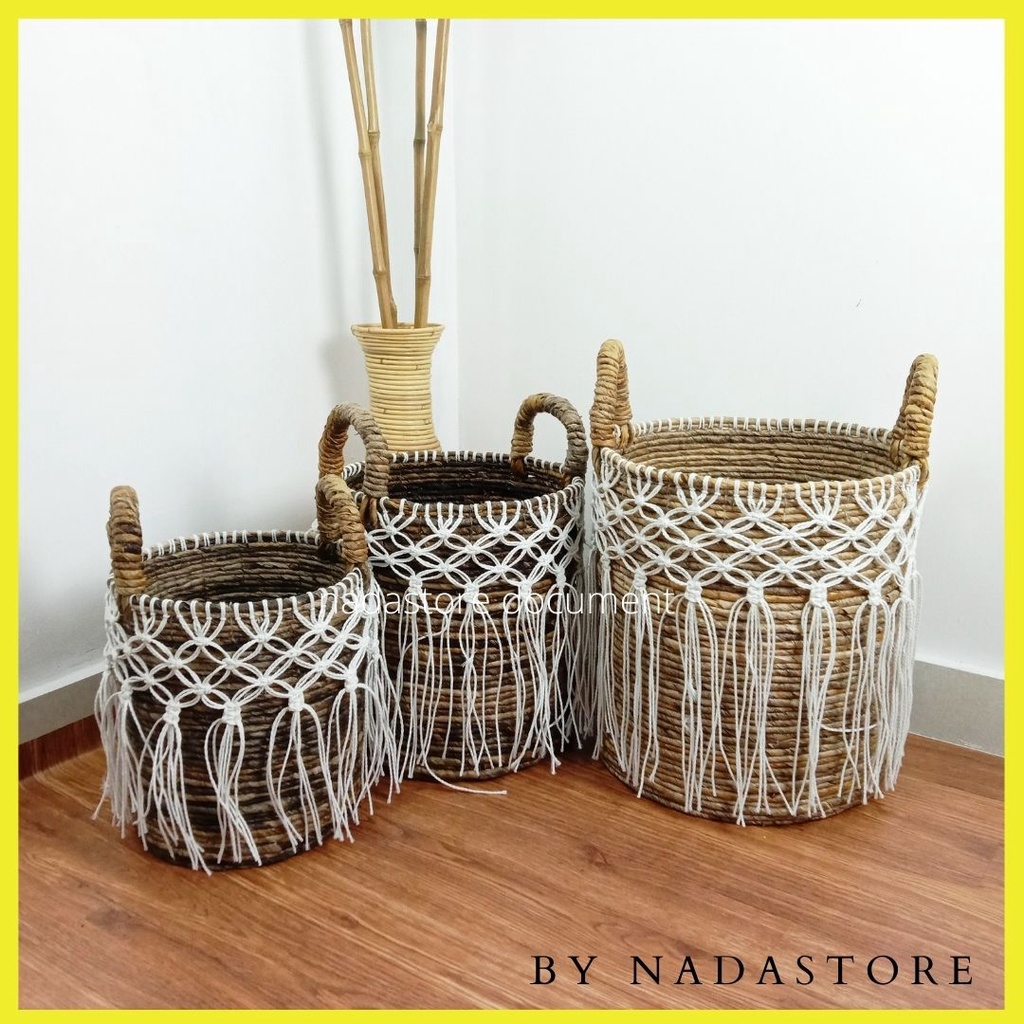 KERANJANG ANYAMANAN BANANA RAJUT MACRAME / KERANJANG SERBAGUNA /POT ANYAMAN BIG SIZE ECER
