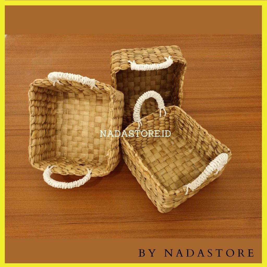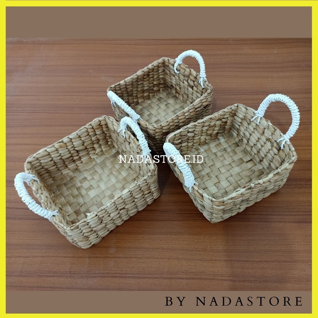 KERANJANG HAMPERS ANYAMAN ENCENG GONDOK / TRAY HANDLE ENCENG GONDOK / STORAGE BOX