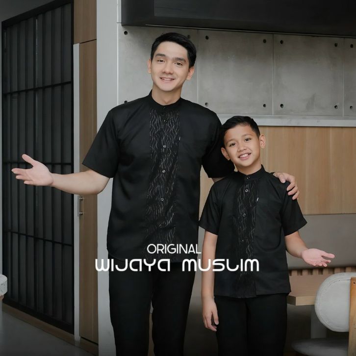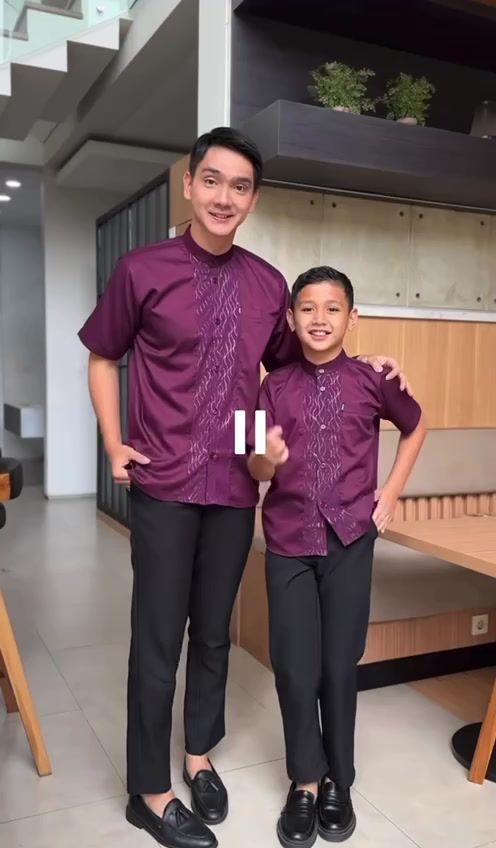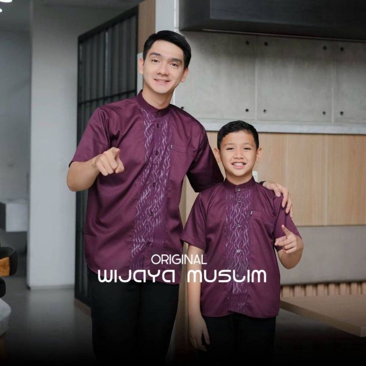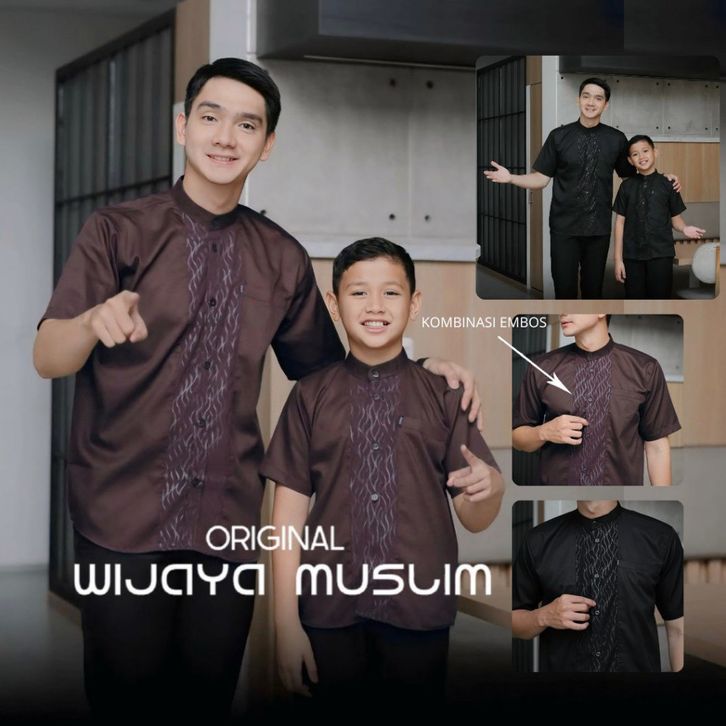 Baju Koko Couple Ayah dan Anak Warna Mahogany Kombinasi Embos Terbaru 2026 Bahan Toyobo Import