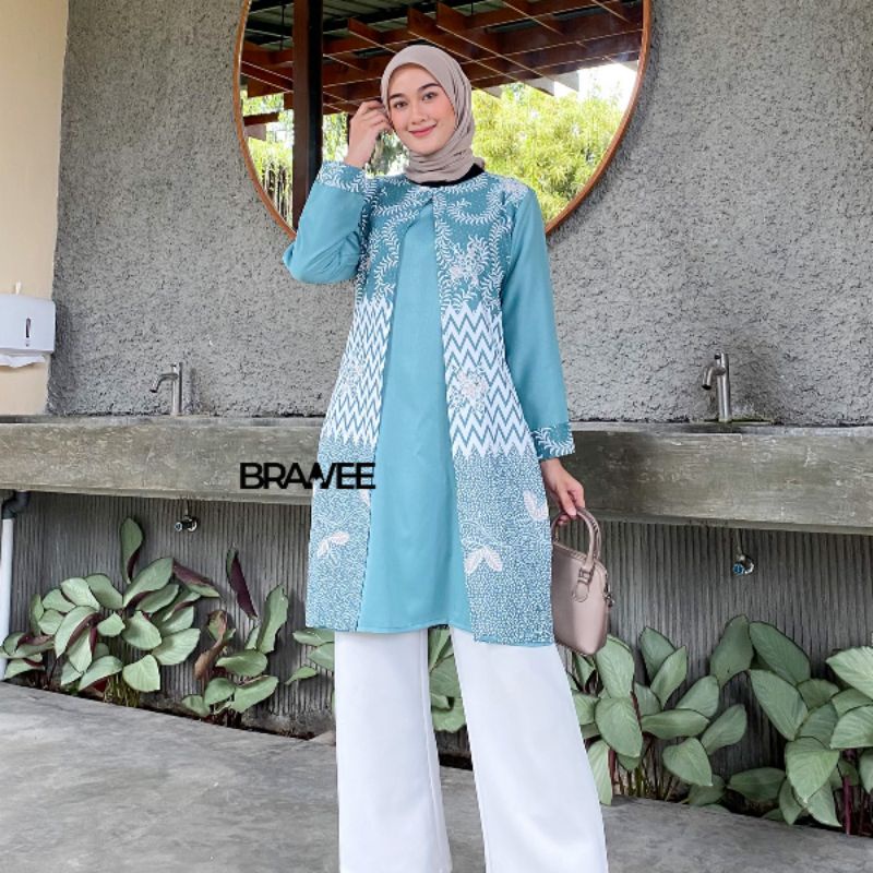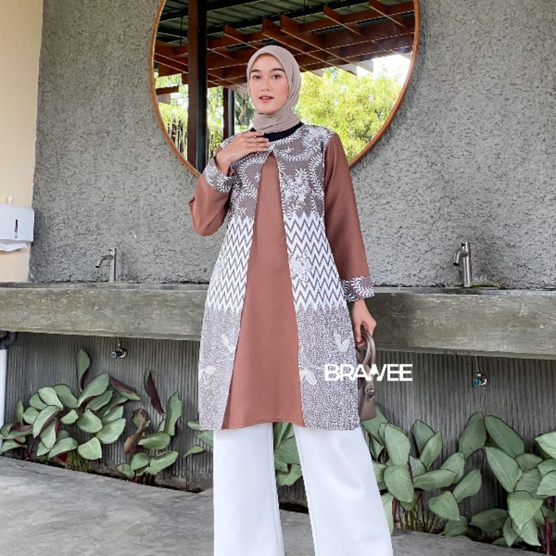 BRAWEE - TUNIK BATIK WANITA-MOTIF ZIGZAG BUNGA