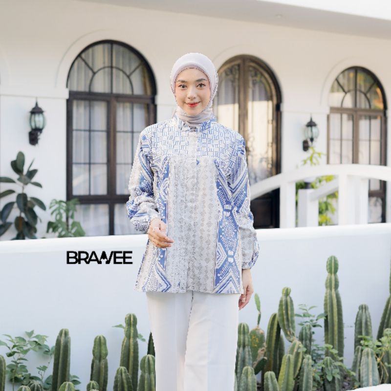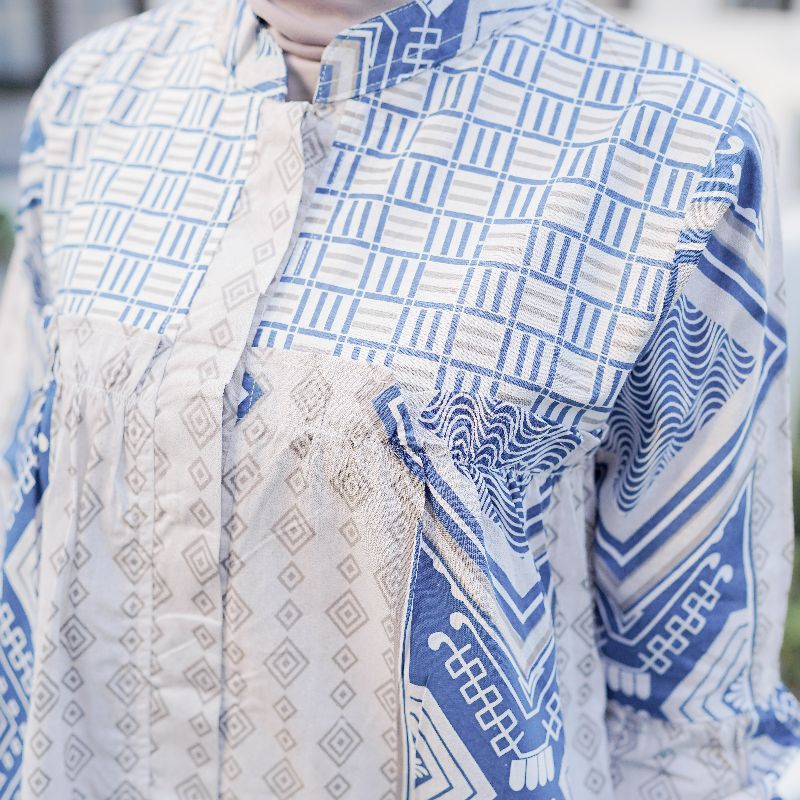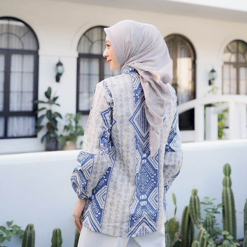 BRAWEE BLOUSE BATIK WANITA ATASAN TRADISIONAL TORAJA BIRU BALON