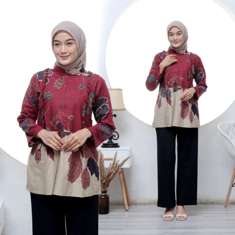 BRAWEE BATIK KERJA WANITA MOTIF MAWAR KERMON