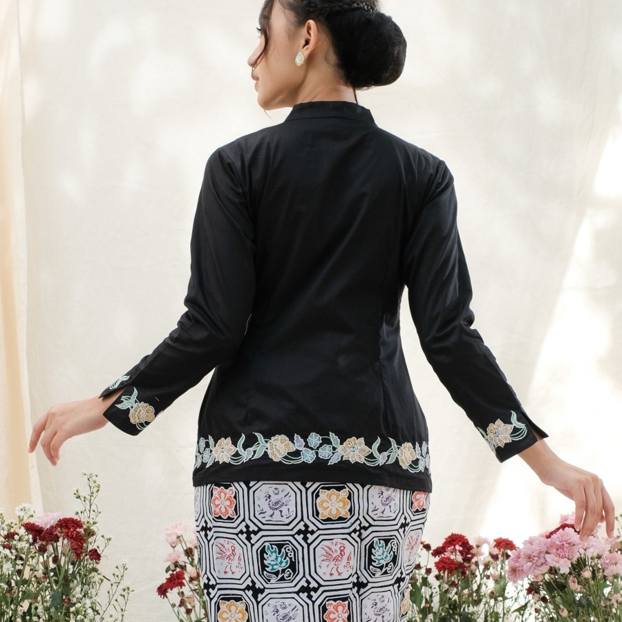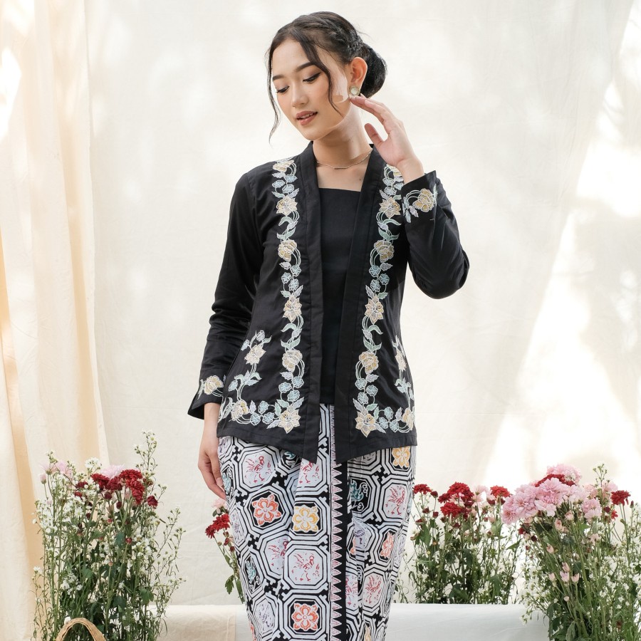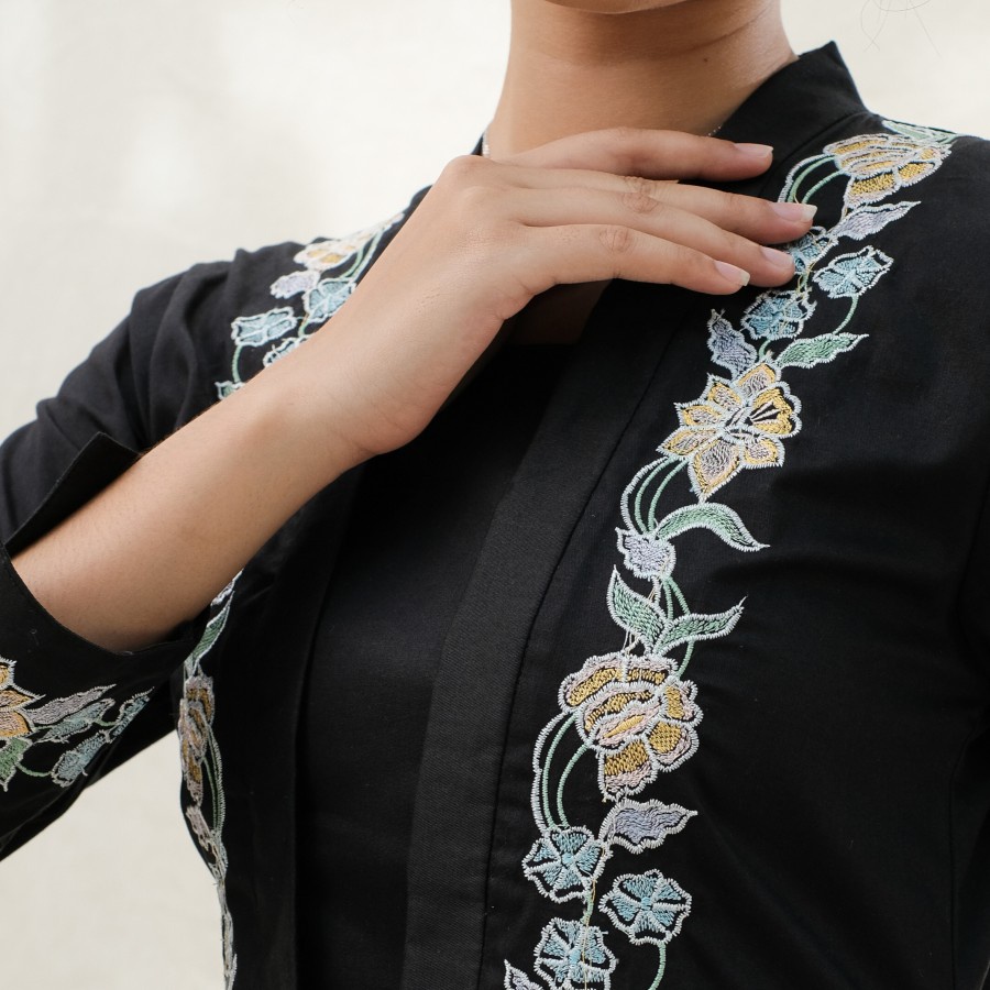 KEBAYA ENCIM BORDIR LENGAN PANJANG MERADELIMA KATUN JEPANG HITAM