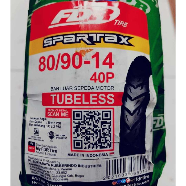 Ban Luar FDR Spartax 80 / 90 ring 14 Tubeless Type