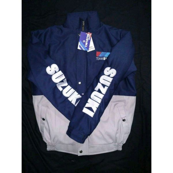 JAKET MOTOR TEAM SUZUKI VINTAGE NAVY KOMBINASI FULL BORDIR