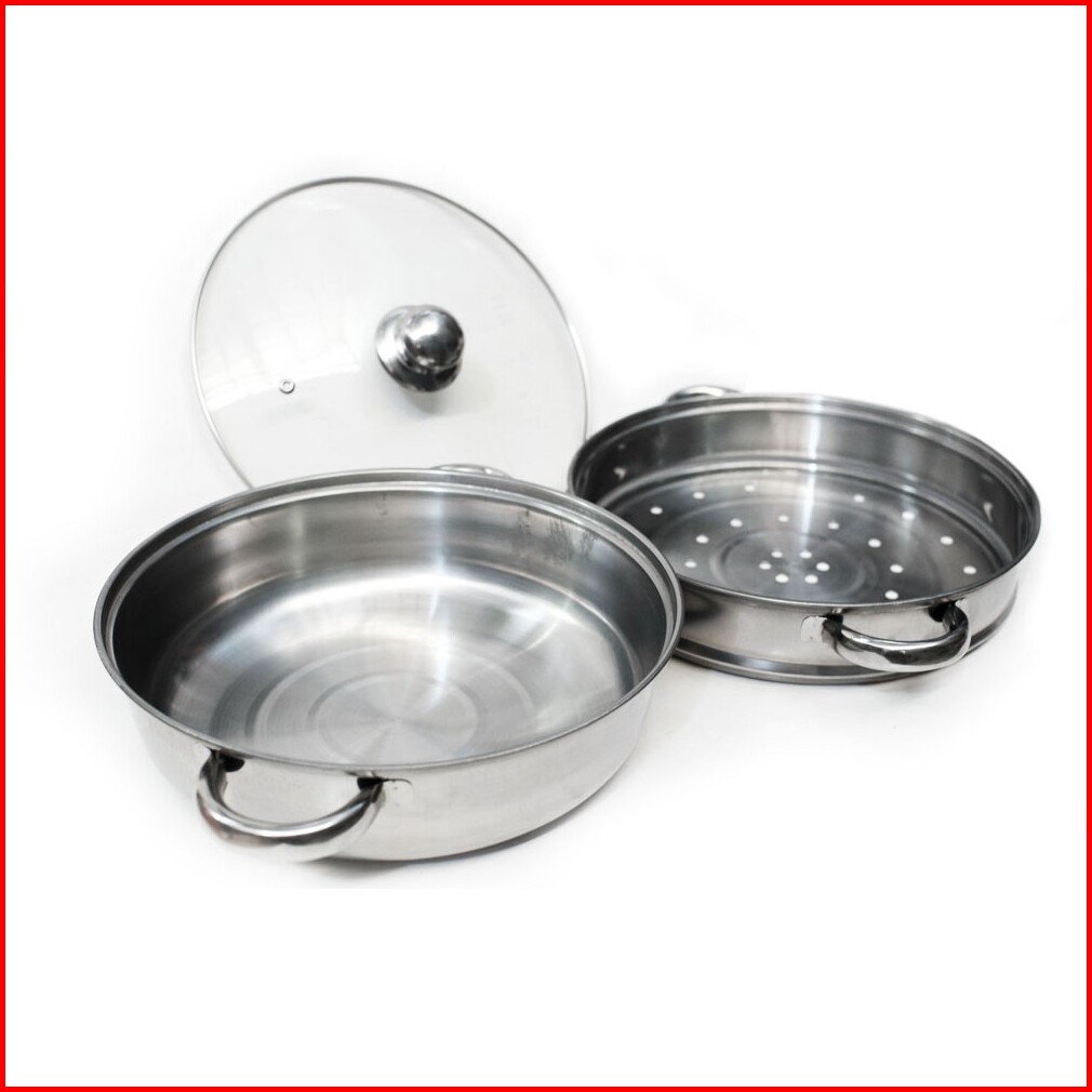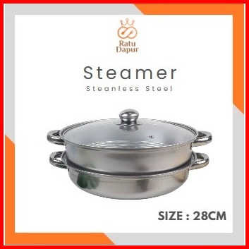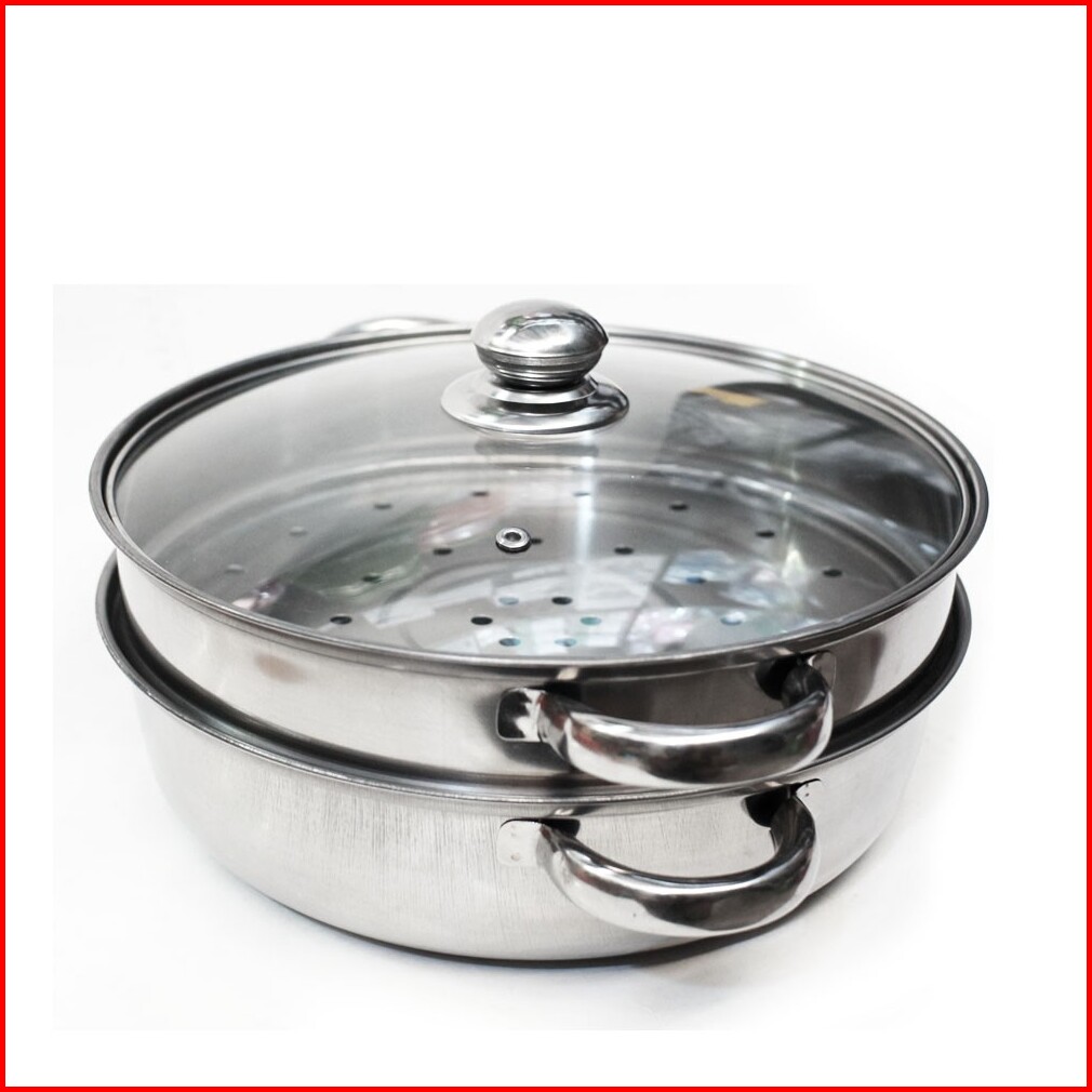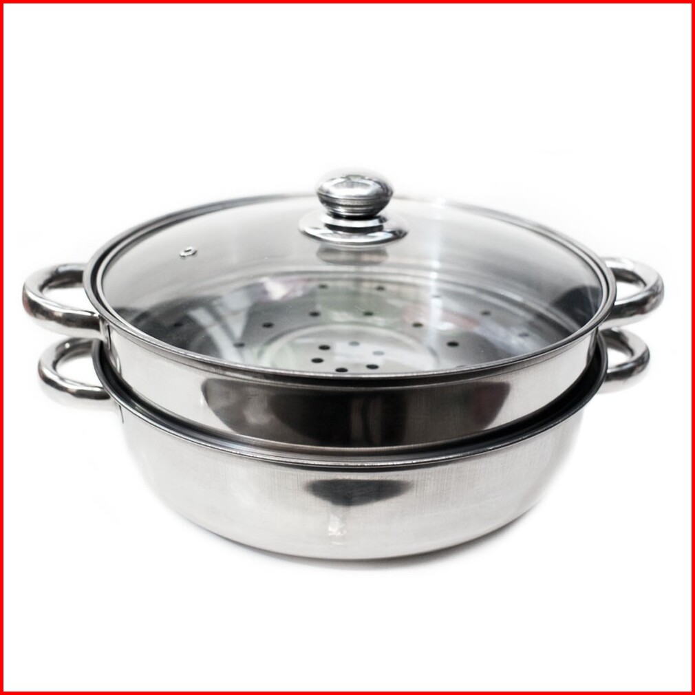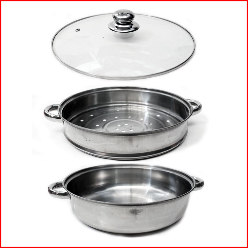 Khusus Panci Steamer 2 Susun Stainless 28 Cm Hr-1120 Panci Kukus Rebus Goreng Tutup Kaca