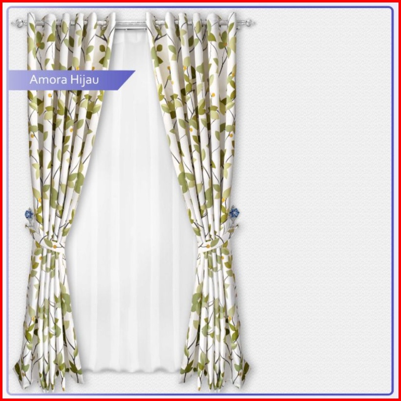 Gorden Jendela Dan Pintu Minimaalis Murah Motif Amora Hijau Smokring 12 Ring