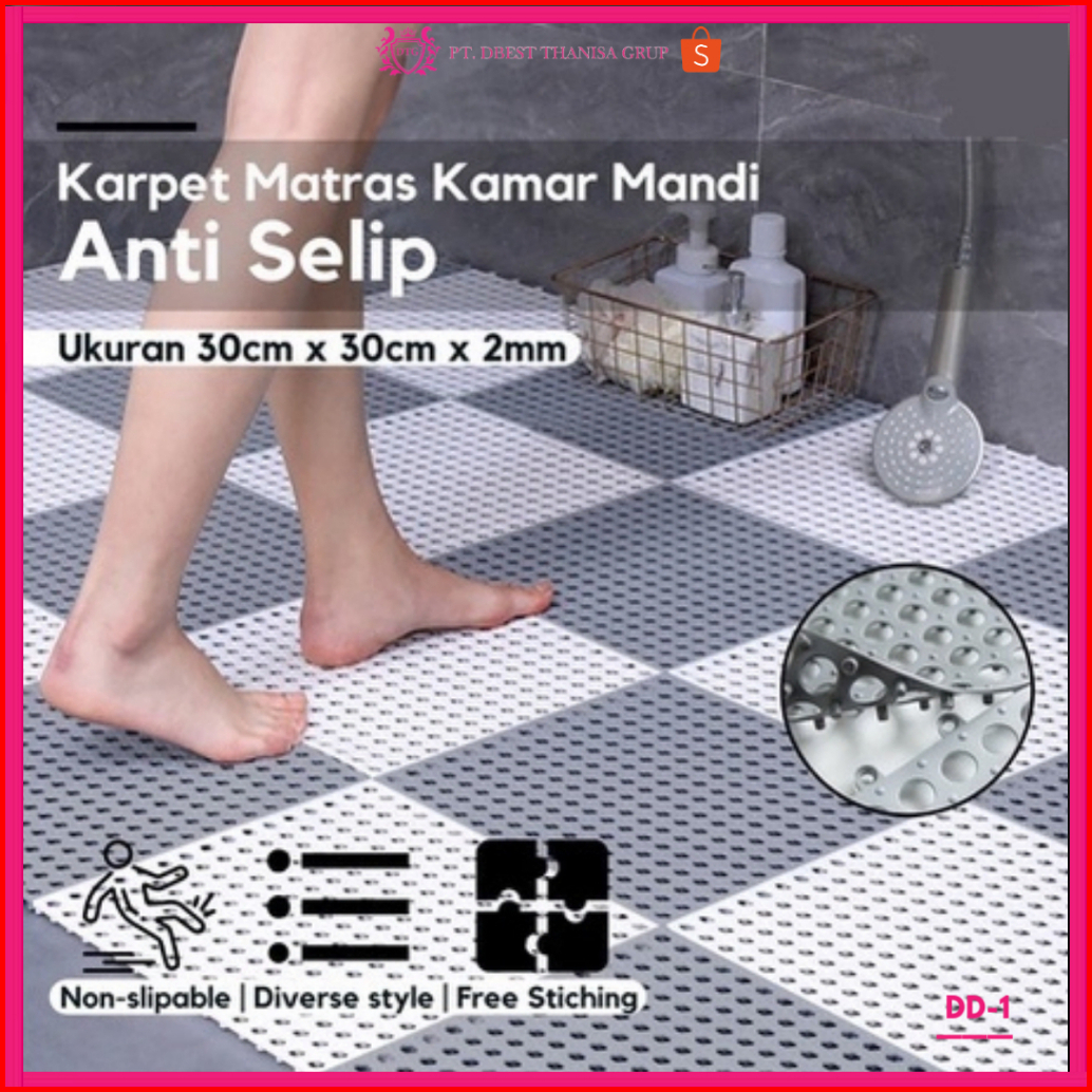 Turun Harga Paket 10 Lembar-karpet Kamar Mandi Anti Licin 30x30cm Keset Lantai Anti Slip Polkadot Dapur Mat Non-slip 10p