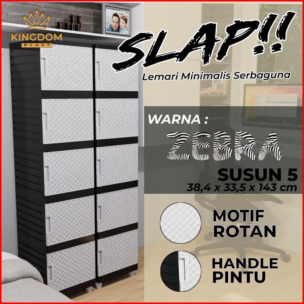 Ready Stock Kingdom Plast Lemari Rak Susun Baju Pakaian Plastik Rotan Serbaguna 2 3 4 5 Susun Slap Zebra Aurora