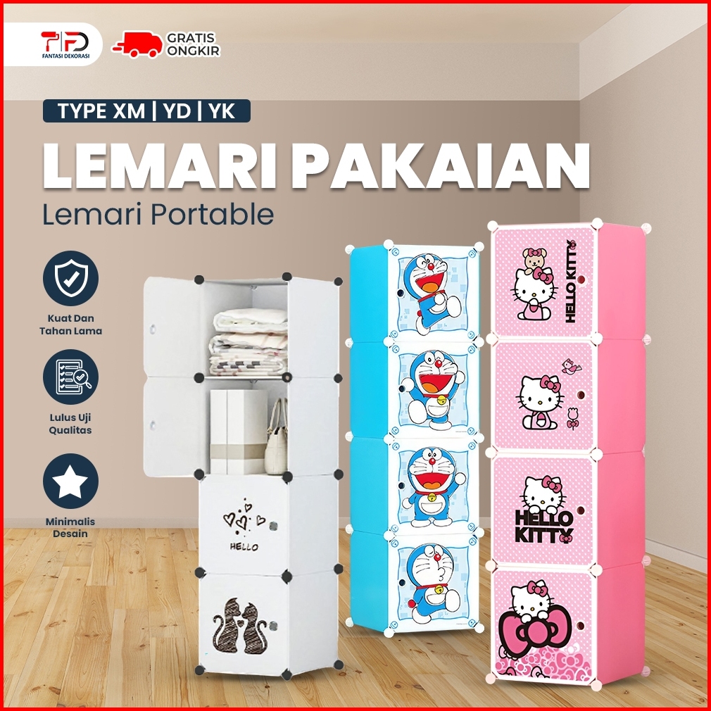 Lemari Portable Lemari Pakaian Plastik Lemari 4 Pintu Rak Serbaguna Baju Wardrobe - Fantasidekorasi