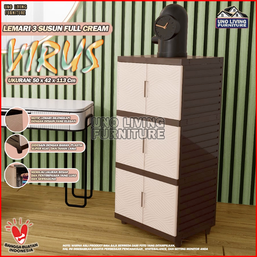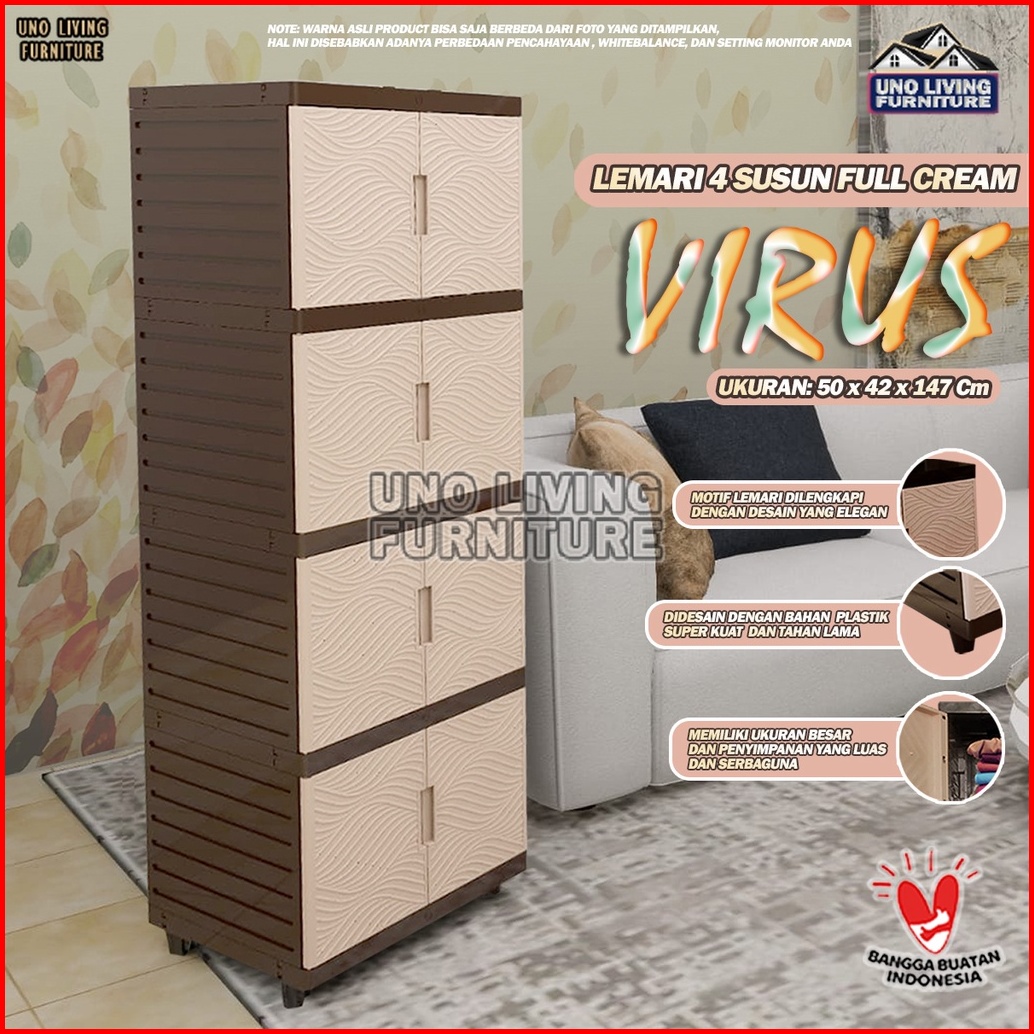 Lemari Pakaian Kingdom Virus 4 Susun Lemari Pintu Kabinet Lemari Plastik Minimalis - Full Cream