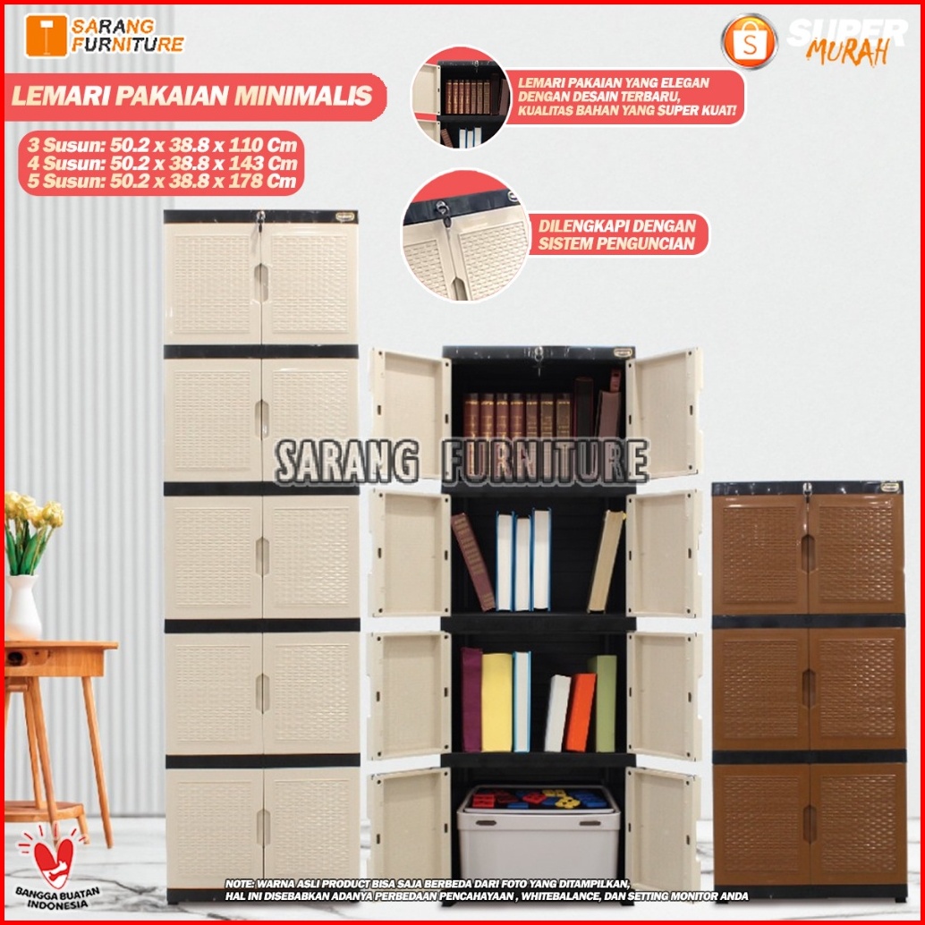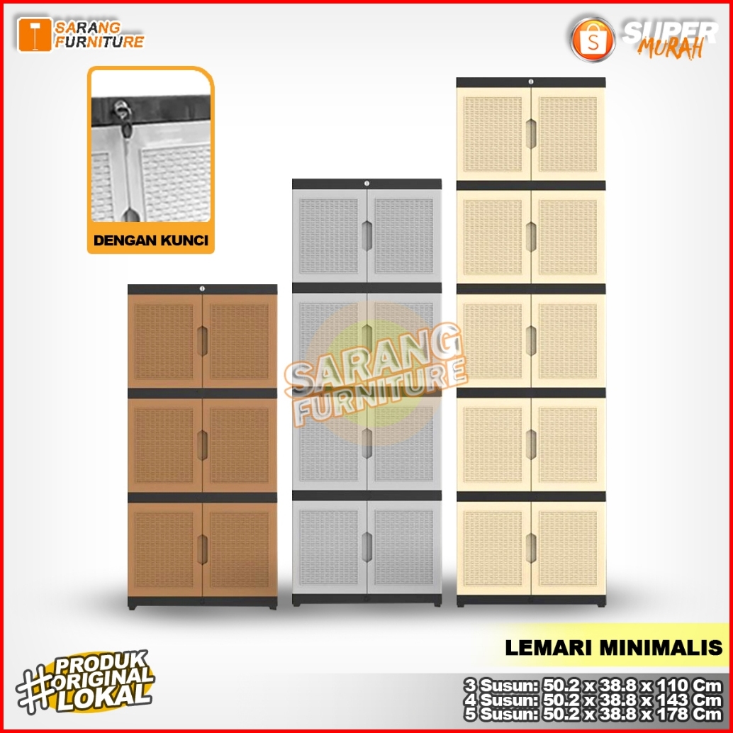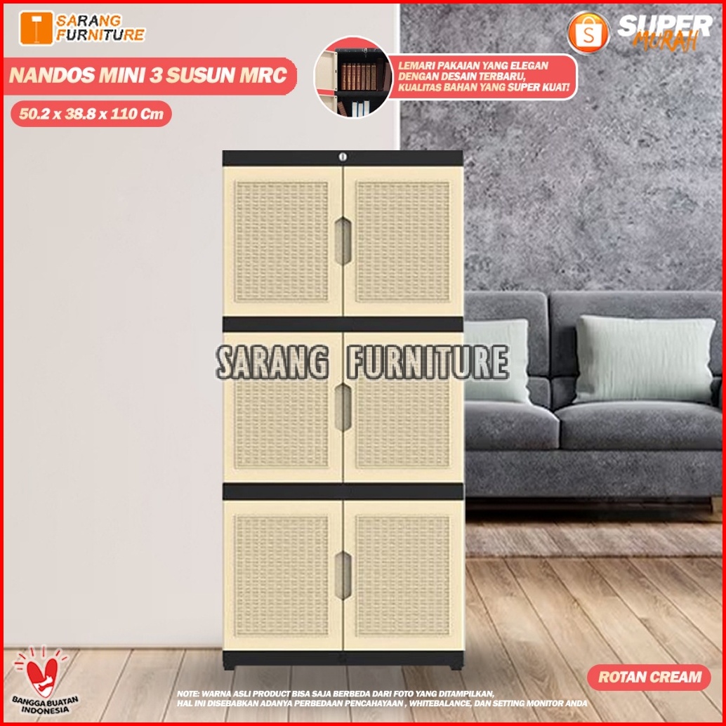 Nandos Mini Cabinet Lemari Pakaian Plastik Dengan Kunci Lemari Pintu Rotan Dilengkapi Kunci