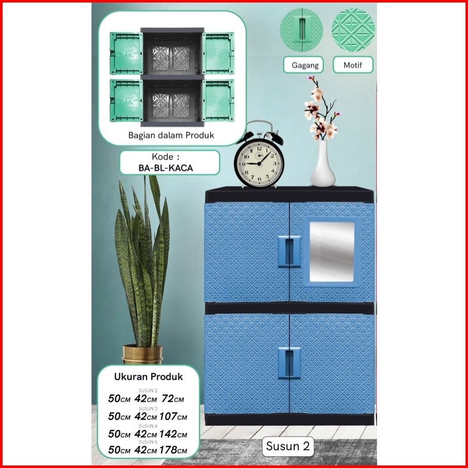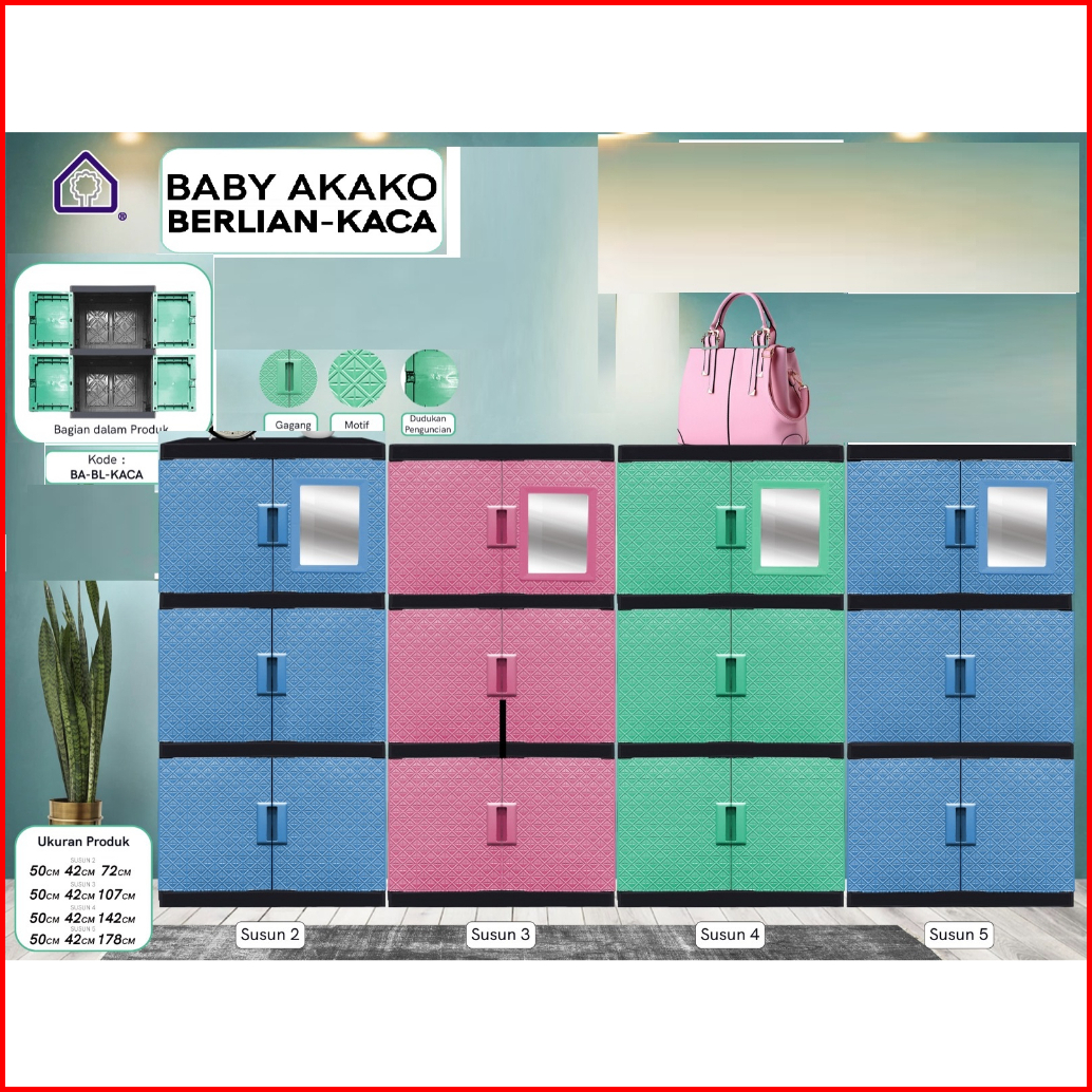 Lemari Plastik Serbaguna Akako Baby Berlian Susun 2 3 4 5 Pintu Murah Kaca Cermin Murah Kokoh Kuat