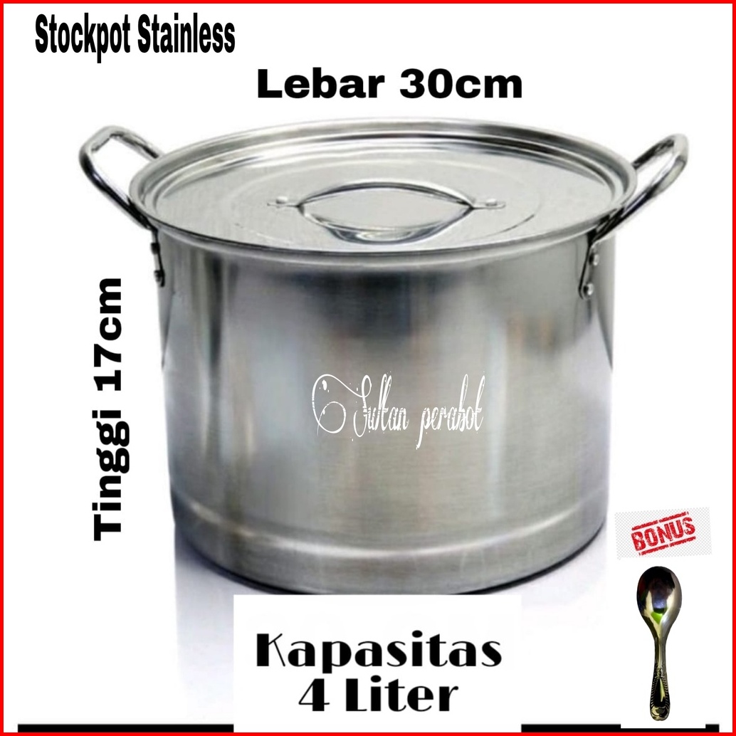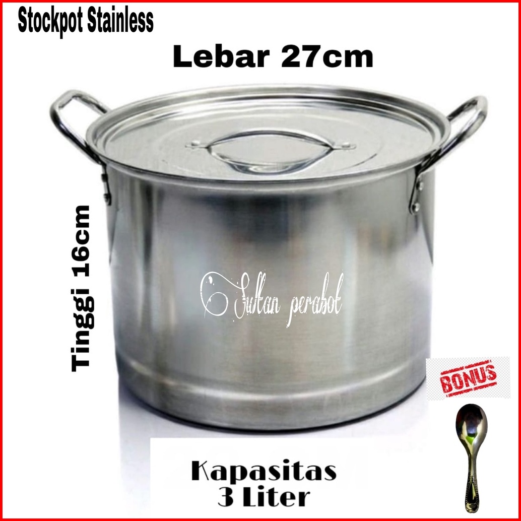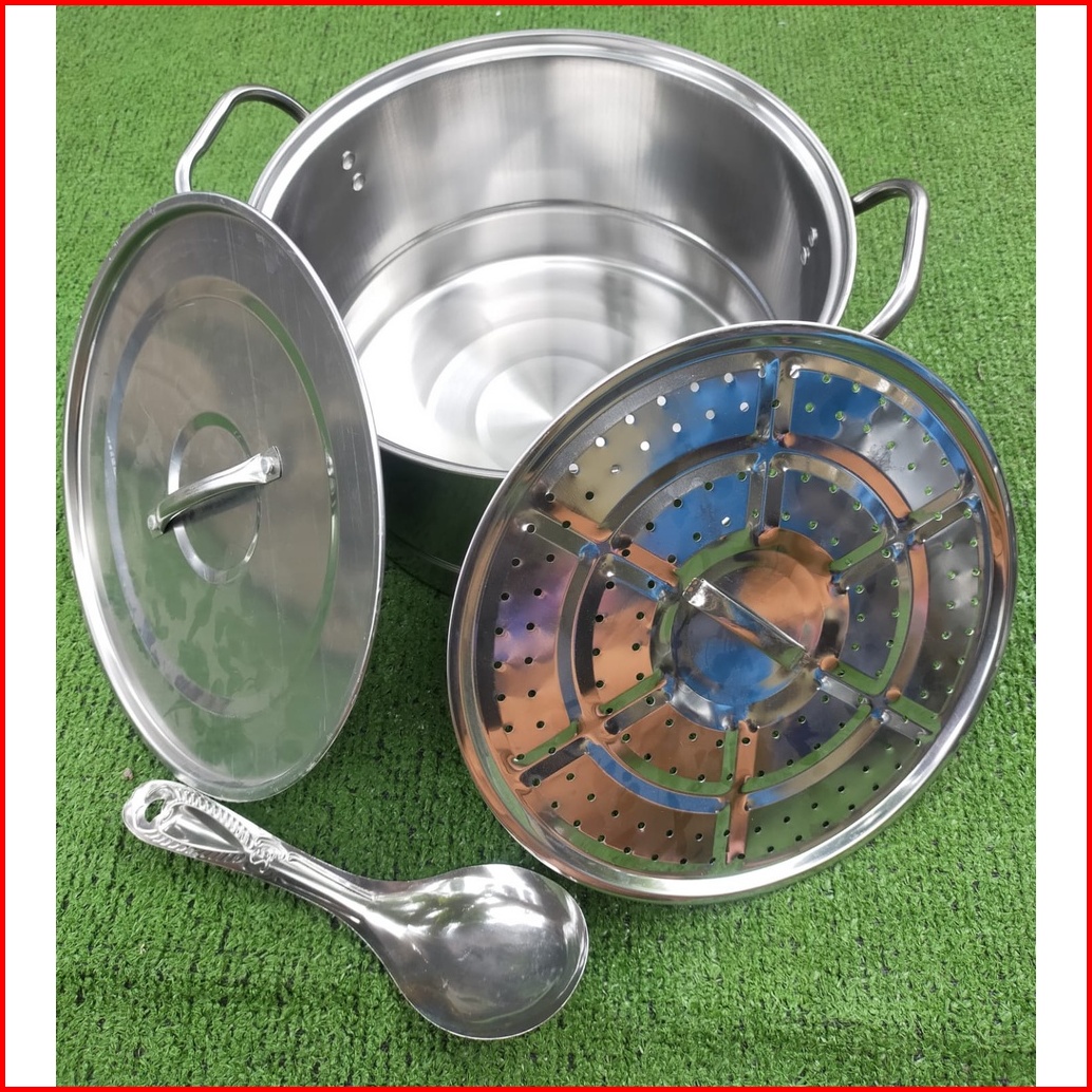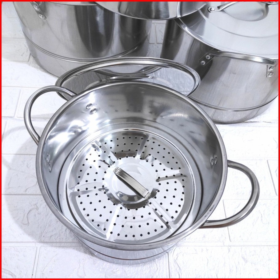 Stockpot Stainless Panci Kukus Dandang Kuah Bakso Mie Ayam Bubur Free Centong Stainless
