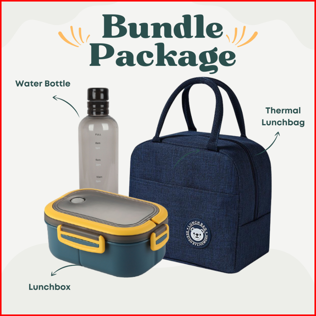 Set Kotak Makan Lunchbox Tingkat Layer Tas Lunchbag Thermal Tahan Panas Botol Minum