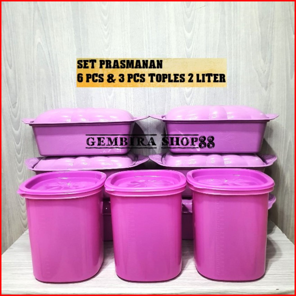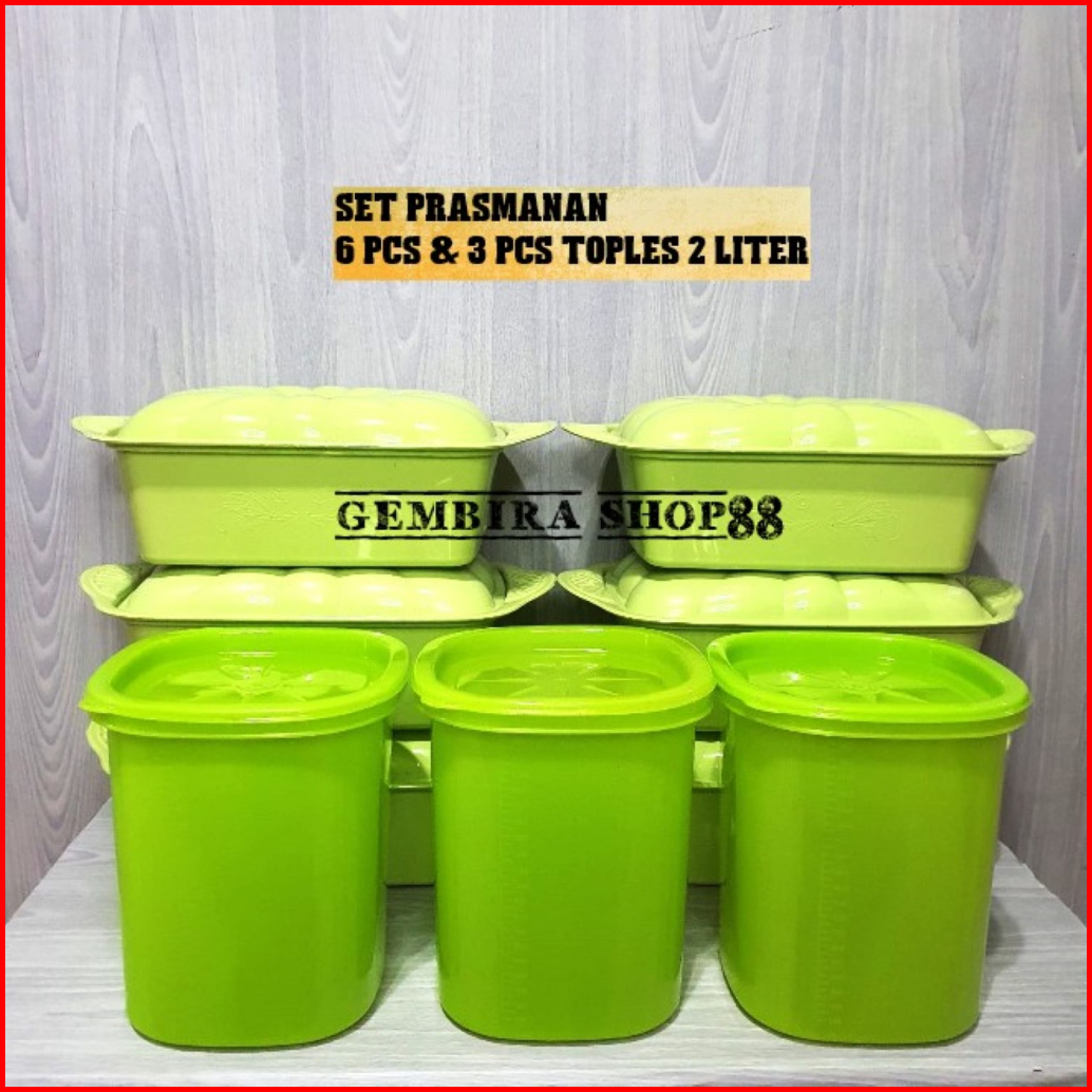 Set 9 Item Prasmanan Segi 6 Pcs Dan 3 Pcs Toples 2 Liter