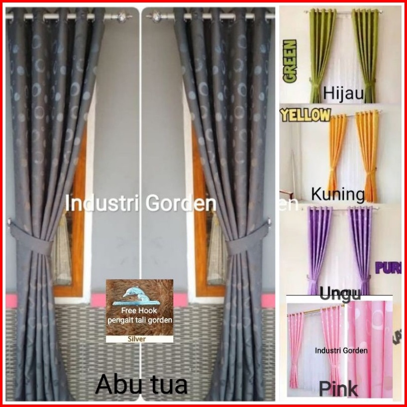 Tinggi 150cm-250cm Gorden Jendela Pintu Minimalis 11 Warna Varian Polos Motif Polkadot Tirai Korden Gordyn Gordeng Horde