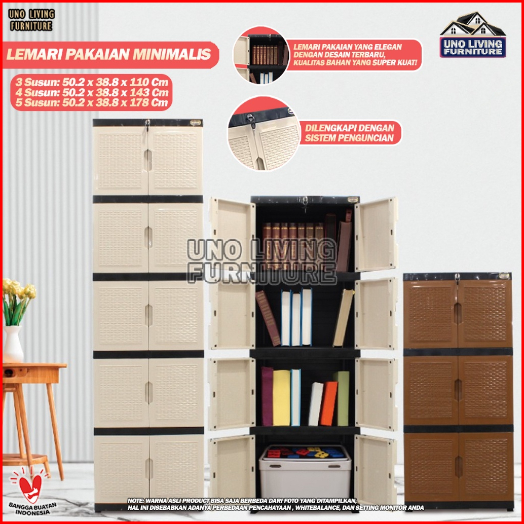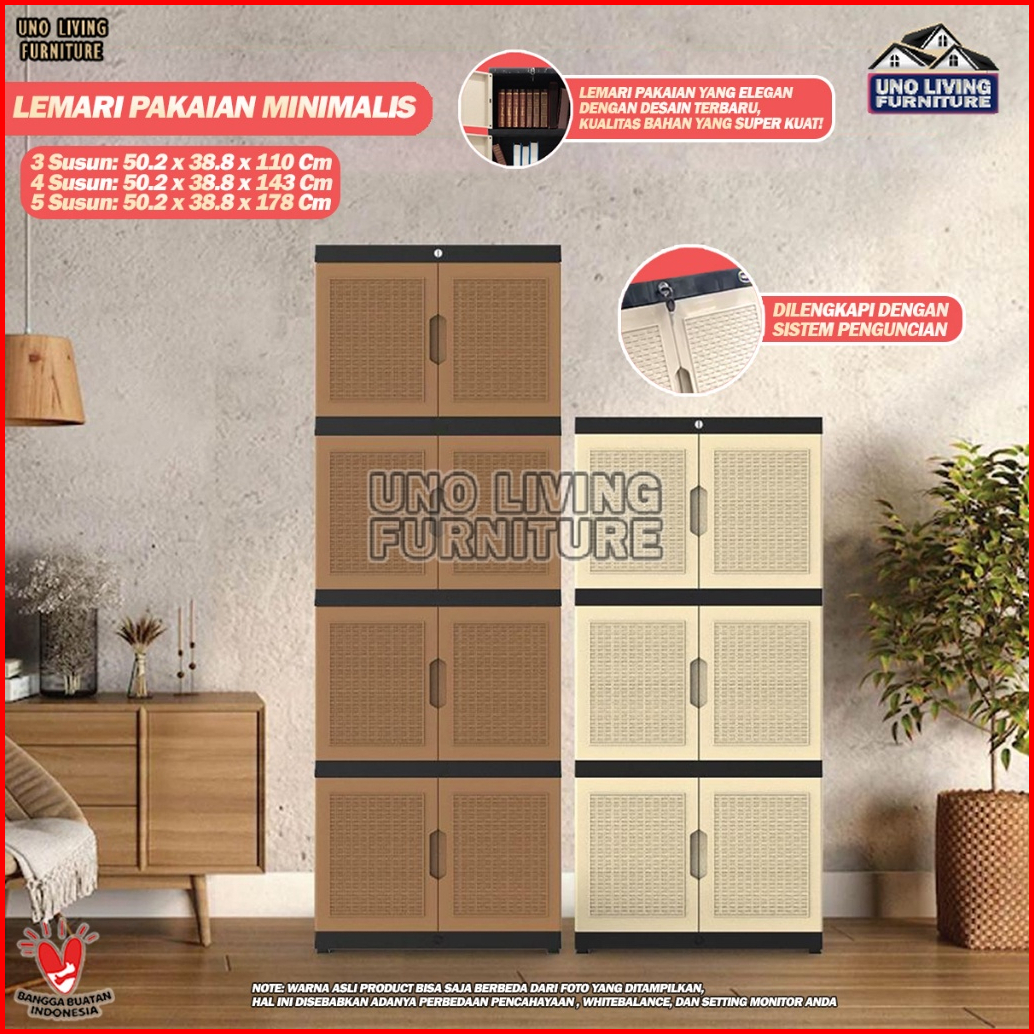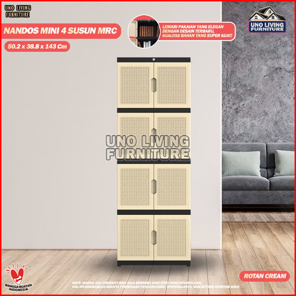 Nandos Mini Cabinet Lemari Pakaian Plastik Dengan Kunci Lemari Pintu Rotan Kunci