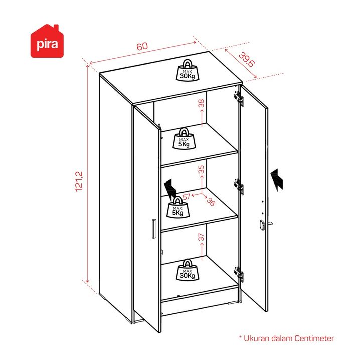 BLS60 Lemari Pakaian Medium 2 Pintu Full Rak