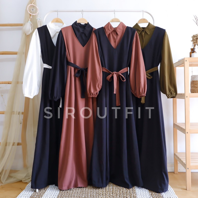 KIM OVERALL SET DAPAT 3 ITEM: KEMEJA INNER+DRESS OVERALL+TALI PINGGANG