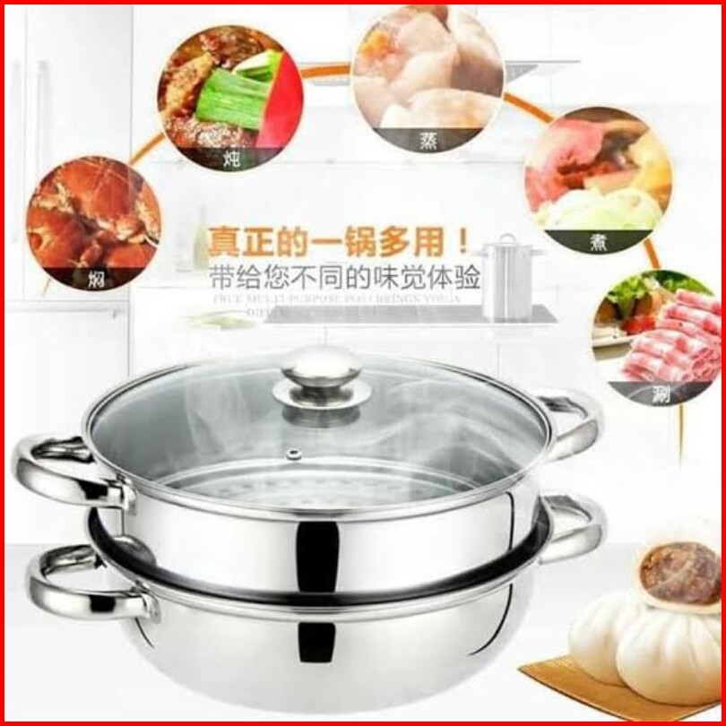 Steamer Pot 2 Susun Panci Kukus 2 Tingkat Panci Siomay Soup Pot 2 Susun