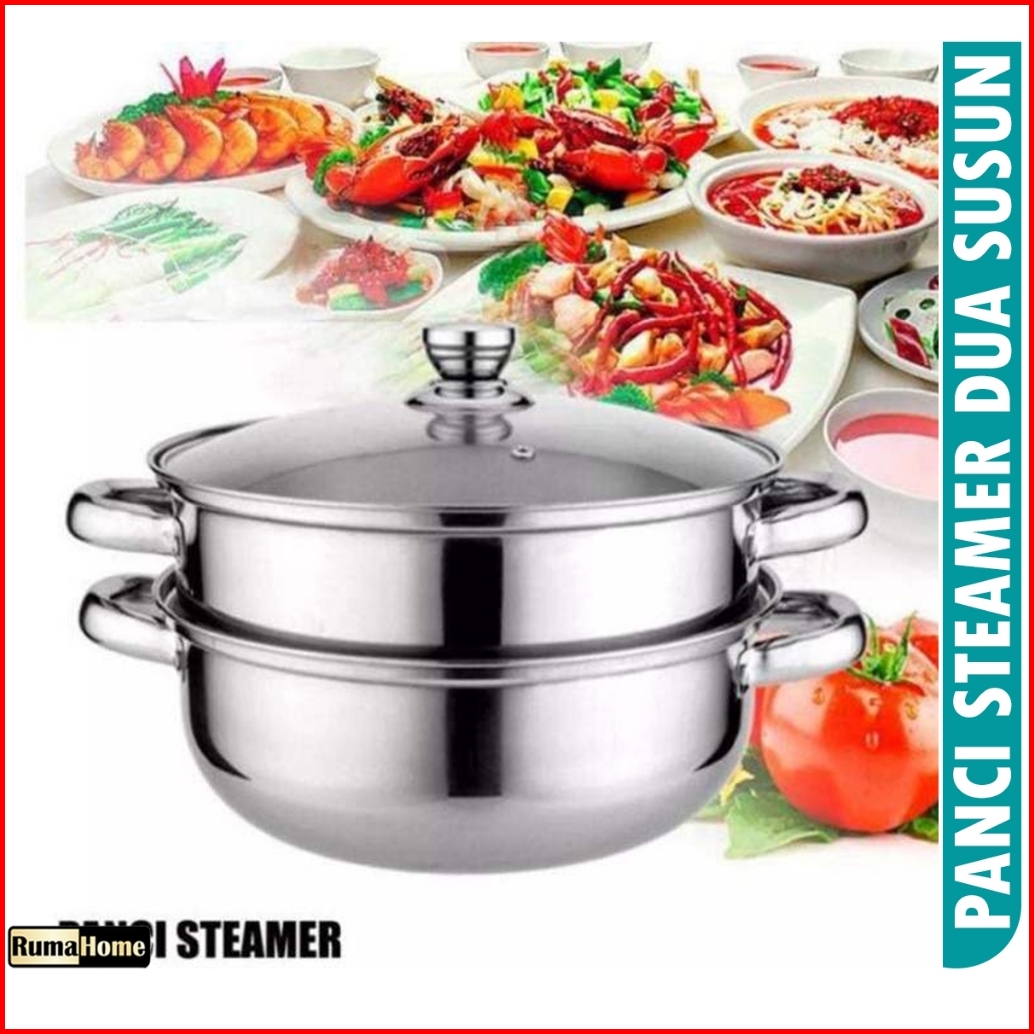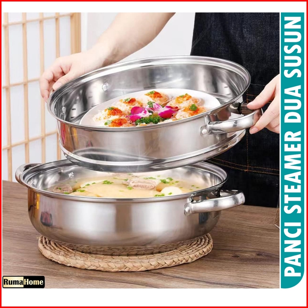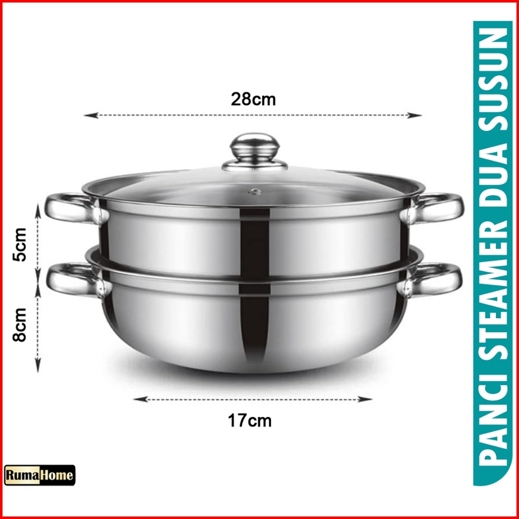 Panci Steamer Kukus Set Stainless Steel Panci Sup Steamer Ikan Bakpao Siomay 2 Susun 28cm Tebal