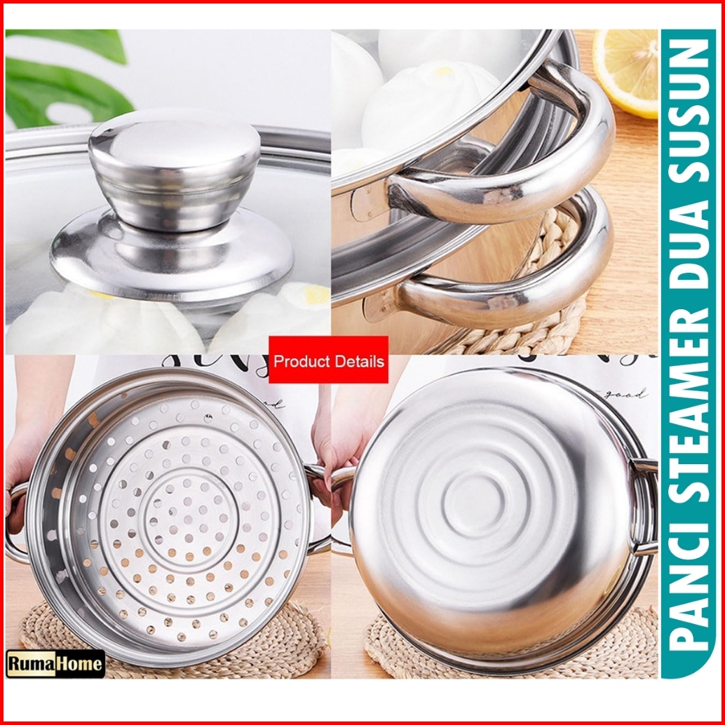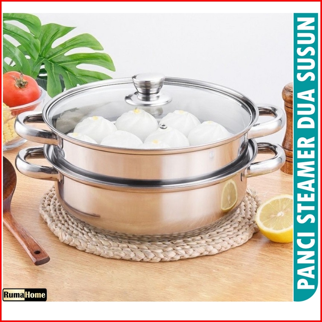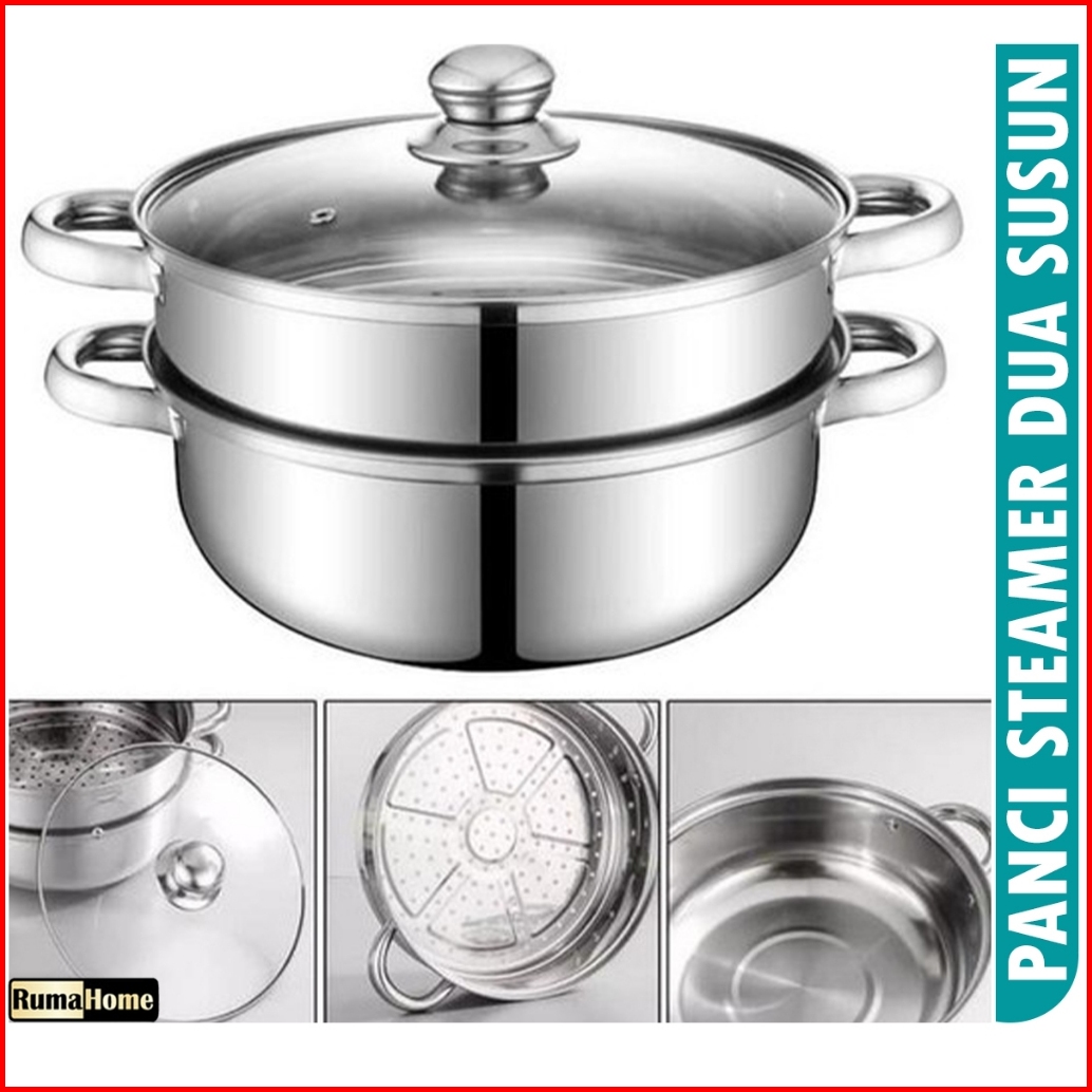 Panci Steamer Kukus Set Stainless Steel Panci Sup Steamer Ikan Bakpao Siomay 2 Susun 28cm Tebal