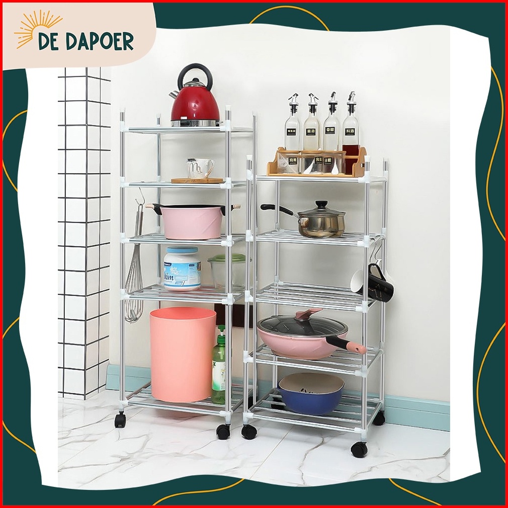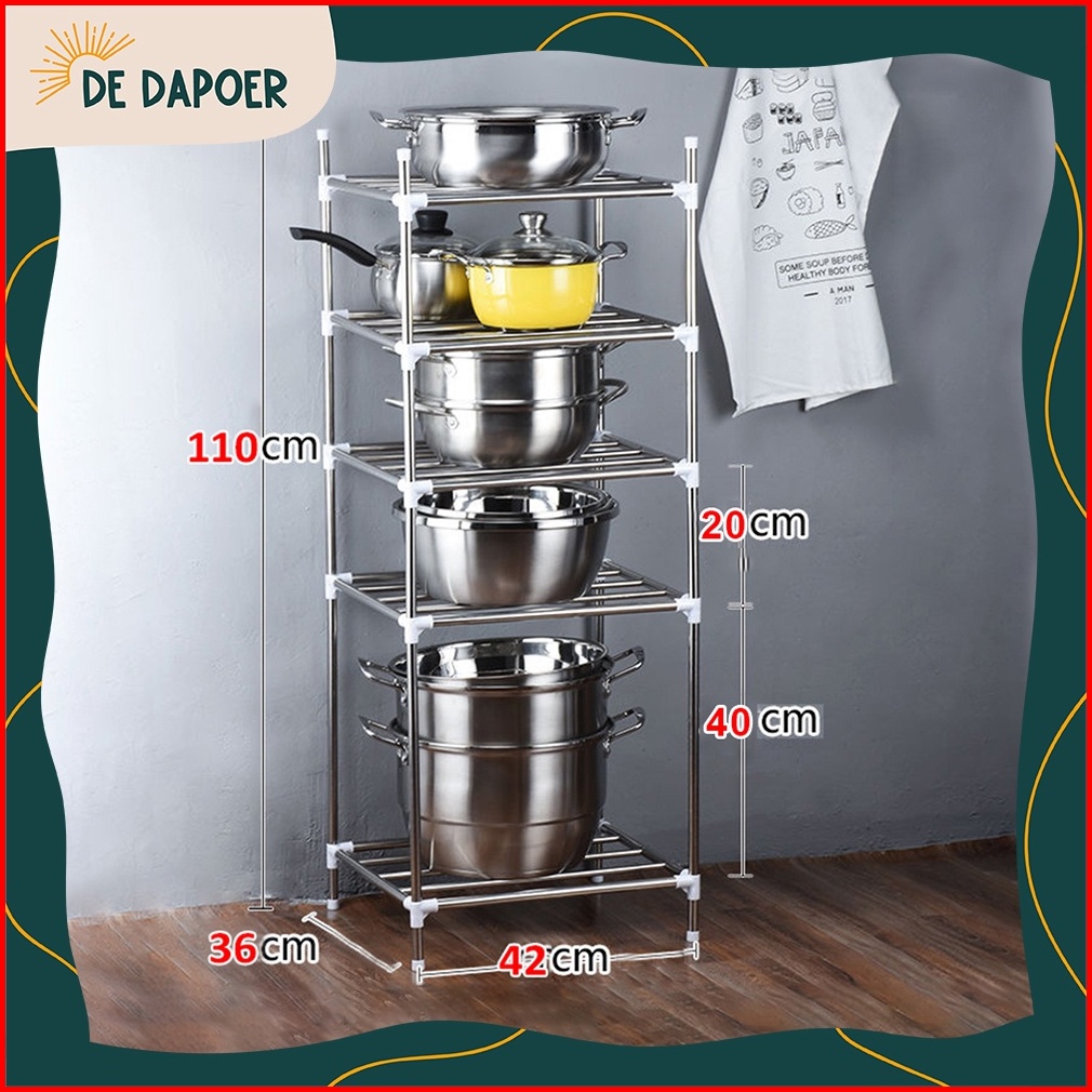Rak Dapur Rak Panci Stainless Steel Tempat Penyimpanan Alat Masak Wajan Spatula 5 Susun