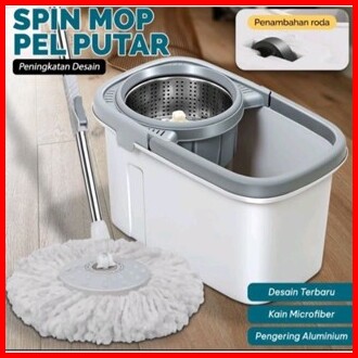 Pel Lantai Ultra Spin Mop Pengering Stainless Anti Karat Berputar 360 Derajat Kain Microfiber