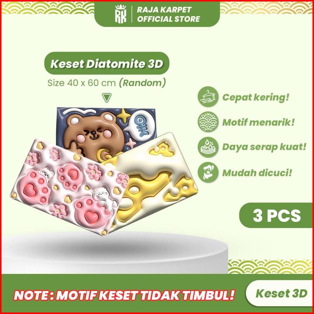 Raja Karpet Keset Kaki Diatomite 3d Biasa Paket 3pcs Keset Kamar Mandi Anti Slip Menyerap Air