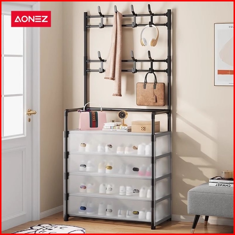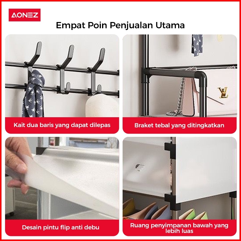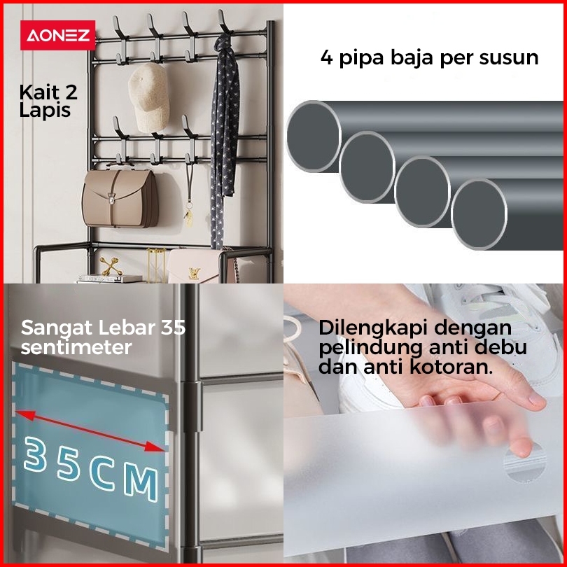 Aonez Rak Sepatu Tertutup Anti Debu Serbaguna Gantungan Tas Pakaian Rak Penyimpanan Dengan Penutup Penyimpanan Gantung