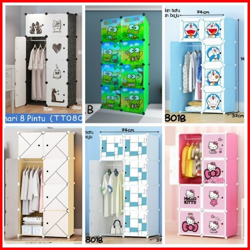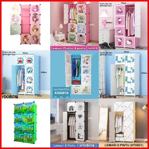 Fh8 Lemari Plastik Portable 8 Pintu Gantungan Karakter Lemari Serbaguna Lemari Minimalis