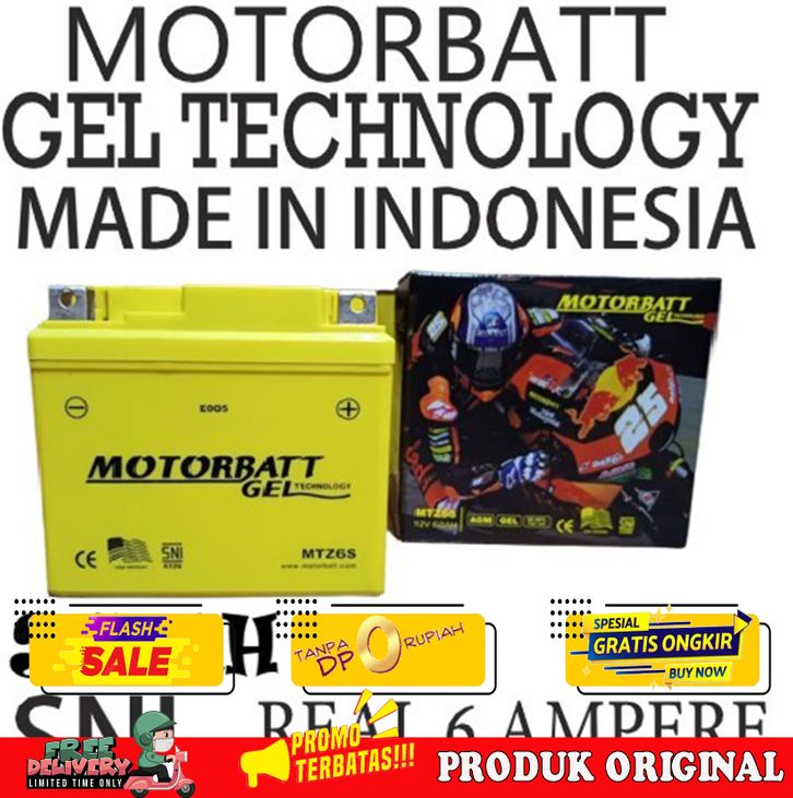 ORIGINAL-AKI KERING MOTOR SATRIA FU/PCX/VARIO 125/150 MOTORBATT GEL TECHNOLOGY MTZ6S 6AH MADE IN INDONESIA