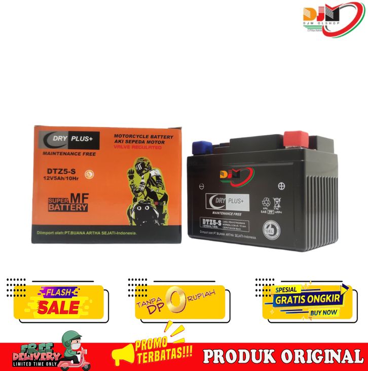 ORIGINAL-AKI KERING MOTOR BEAT VARIO SCOOPY DTZ5S 12V 5AH DRY PLUS+