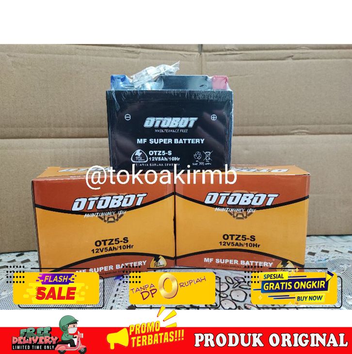 GTZ5S OTOBOT AKI MOTOR BEAT, MIO SOUL, VARIO 110, SUPRA X 125, MIO M3, MIO Z, MIO GT ( OTZ5/(12V/5AH) AKI KERING MURAH